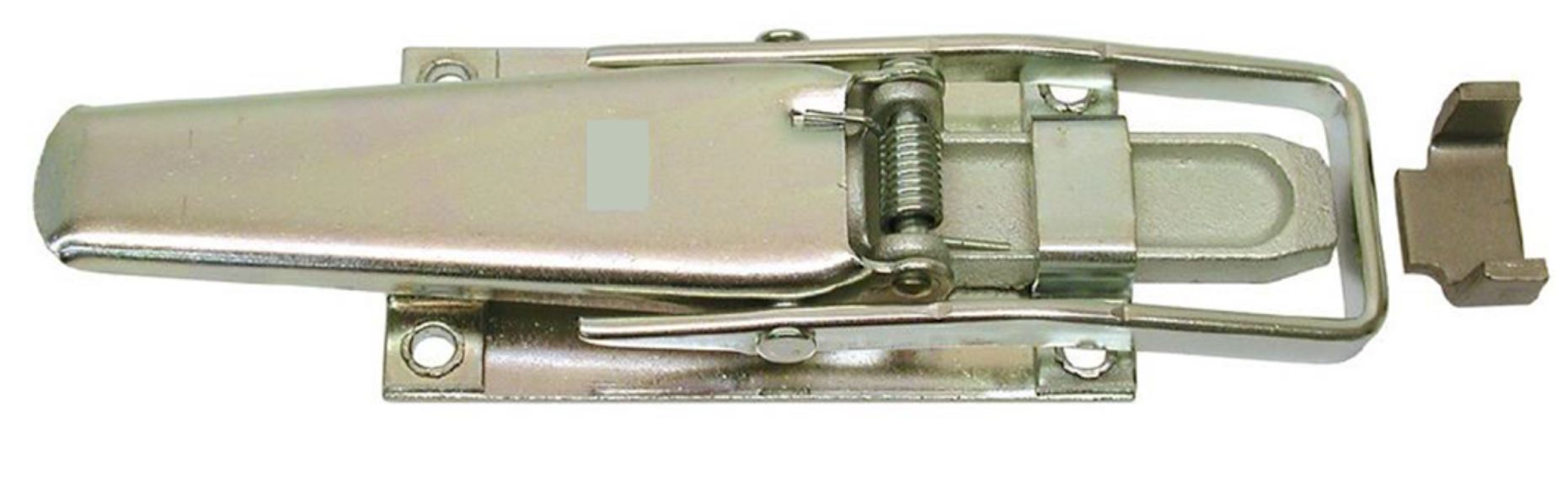 Plattformslås för tung utrustning Total längd: 275 mm Inkluderar motsvarighet Hål i spärren för nitning Material: galvaniserat stål