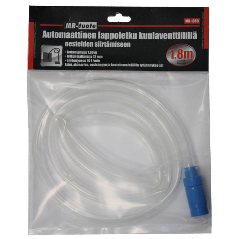 Automatisk hävertsslang med kulventil för vätsketransport. Slangens längd 1,80 m, Ø 12 mm, överföringshastighet 10 l/min.