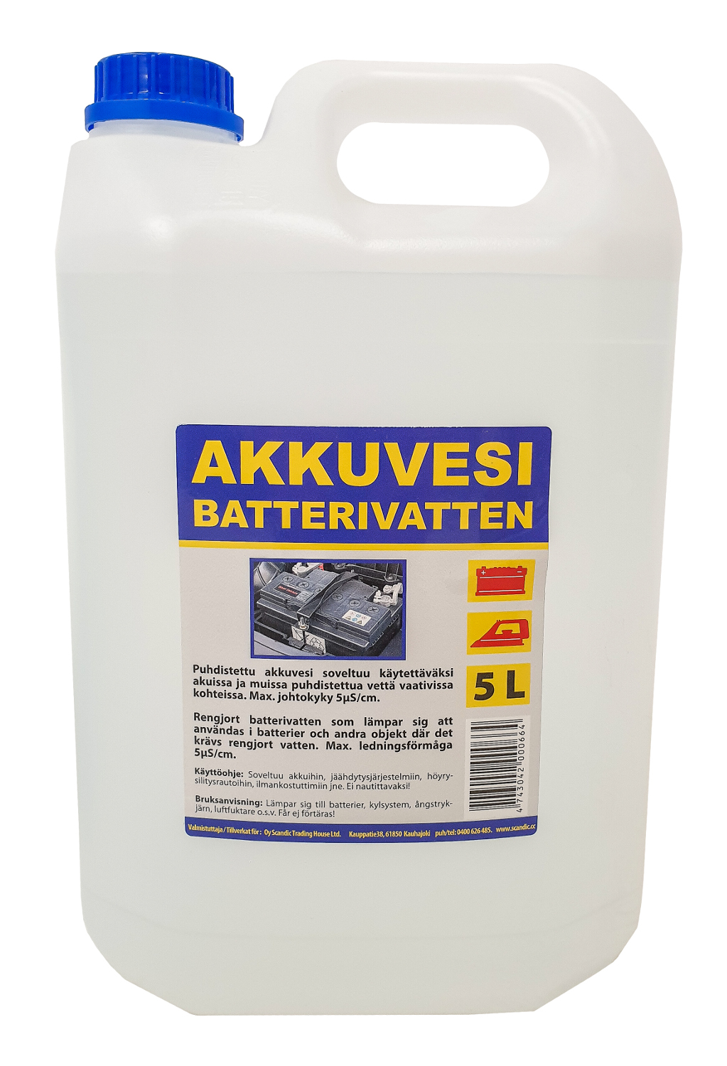 Rengjort batterivatten som lämpar sig att användas i batterier och andra objekt där det krävs rengjort vatten.