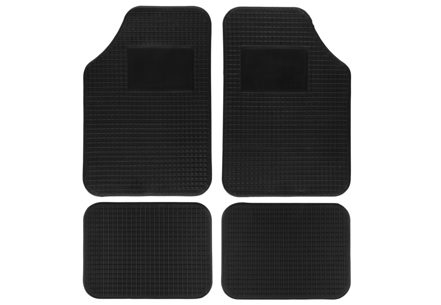 Universell storlek och modell mattset för bilinredning. Fyra mattor i setet, två bak och två fram. Tillverkad av slitstarkt och lättskött gummi.