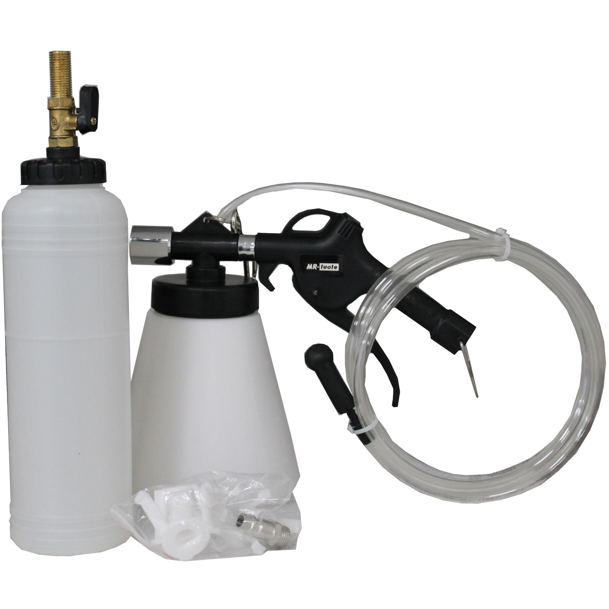 Bromsluftnings-/bromsvätskebytesapparat, arbetstryck 6-12 bar, luftförbrukning 180 l/min, behållarvolym 0,75 l / 1 liter. Inkluderar adaptrar.