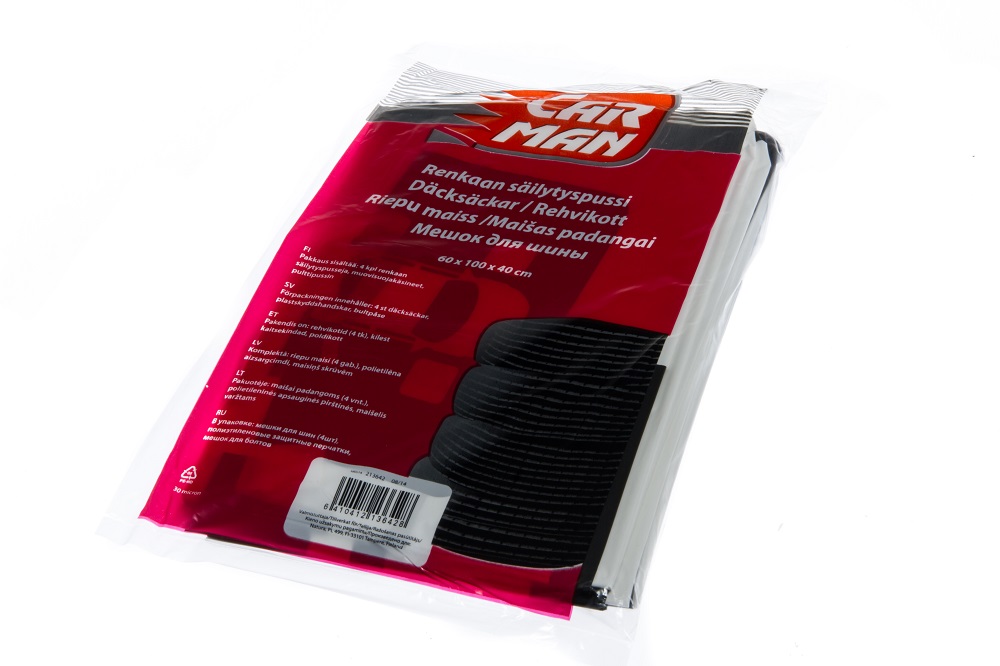 4 st Carman däckpåsar som rymmer de vanligaste däckstorlekarna. En bekväm ruta på däckpåsen där du kan markera var däcket satt på bilen. Skydda däck från smuts och damm under lagring. Förpackningen innehåller engångshandskar och en separat påse för bultar.