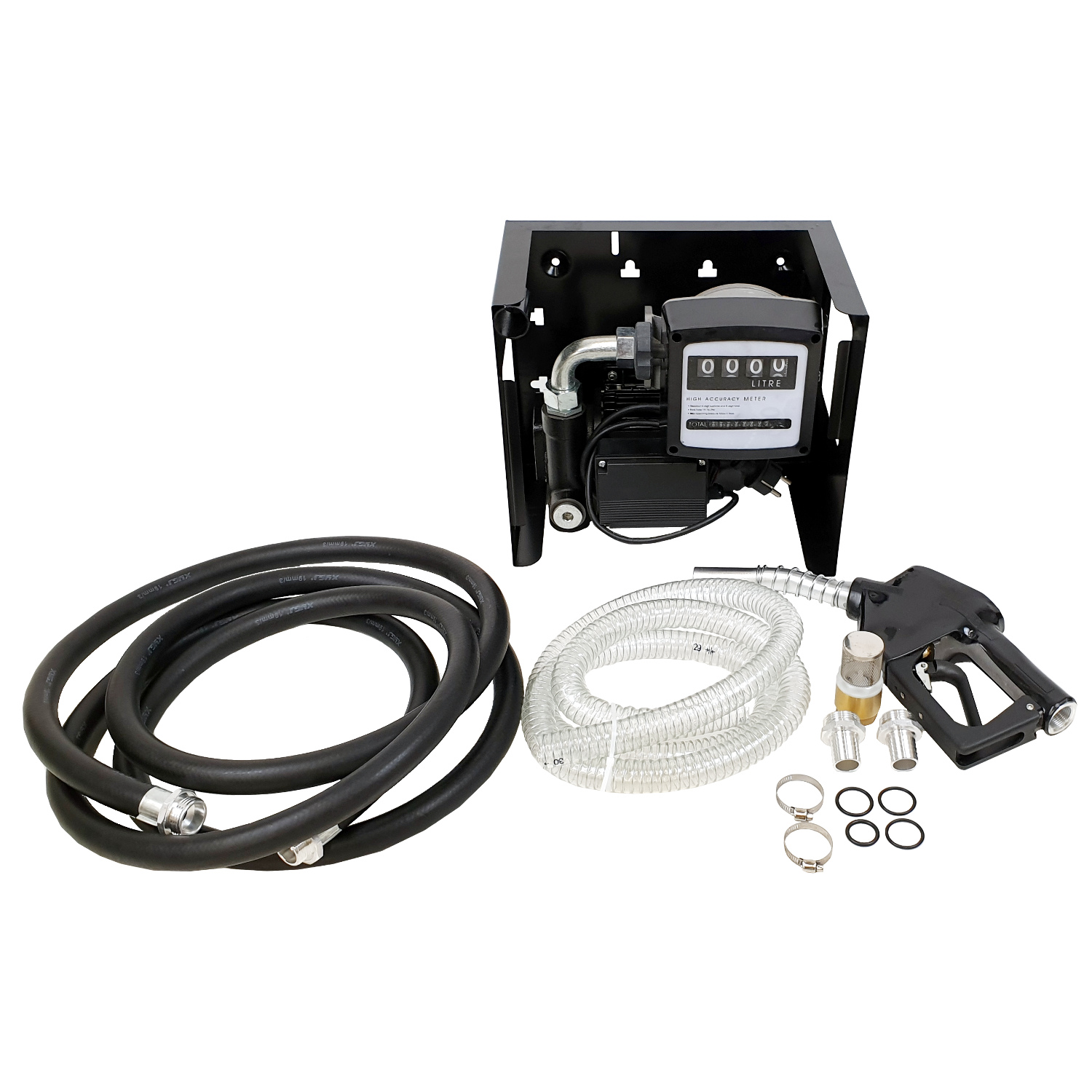 Diesel tankserie 230V med mätare Eldriven dieselpåfyllningssats med mätare och bränslepistol. Egenskaper: Mätare 230V 375W Pump 20-60 liter i minuten Ab