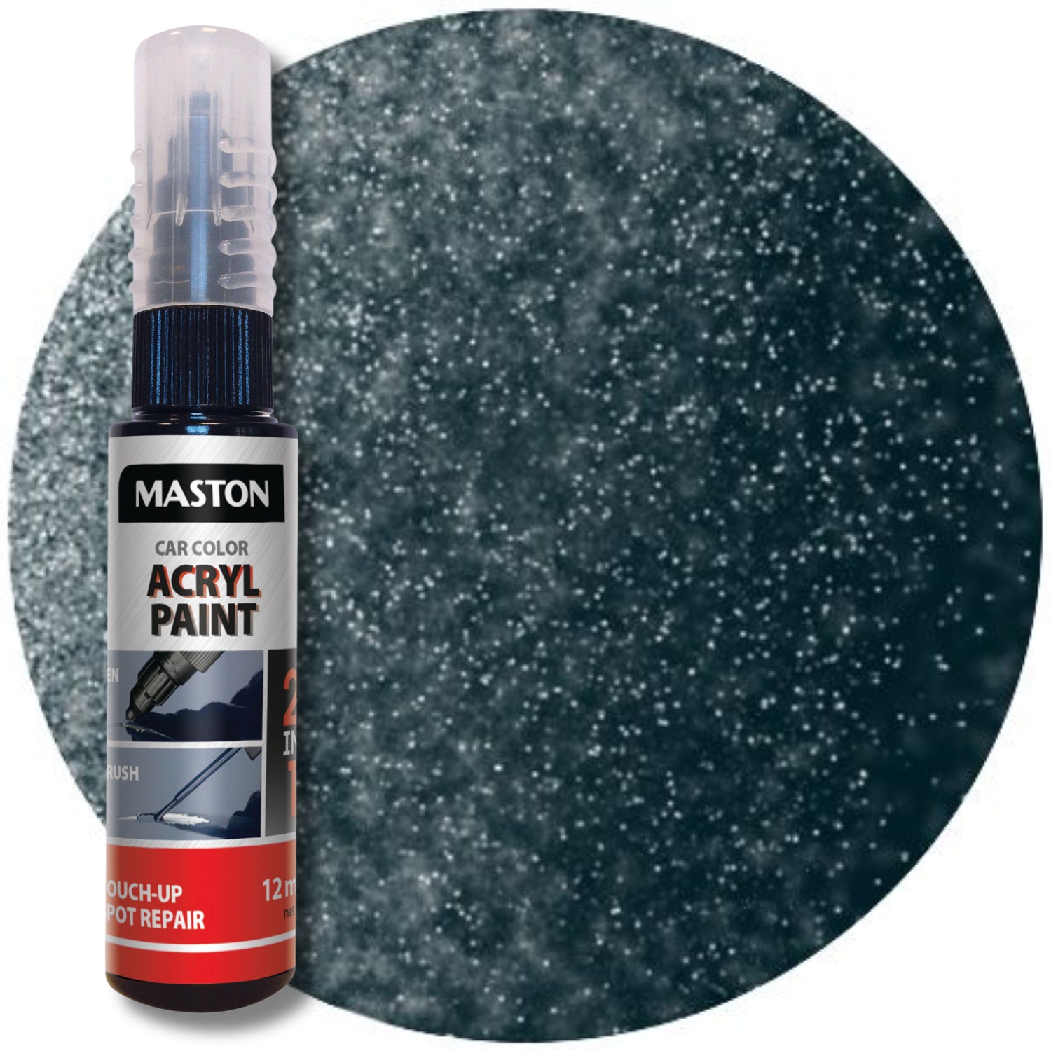 I Mastos Touch-up korrigeringspenna får du två alternativ i ett paket. Strukturen på Masto Touch-up korrigeringspennan är unik. En nål eller en liten borste kan användas för att reparera små repor och bucklor. Mängden färg är lätt att justera. Lämplig för användning på metall, trä, glas, sten, keramik, kartong och de flesta plastytor.