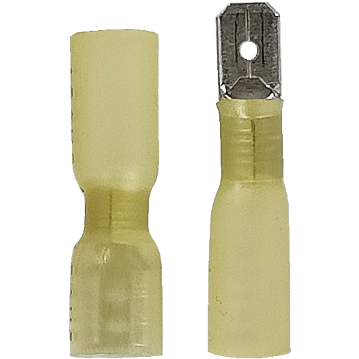 Gul flatstiftssats för 4.0-6.0mm² ledare, 10 st med krympslang. Max. belastning 600 V / 24 A. Fukt- och vattentät anslutning.