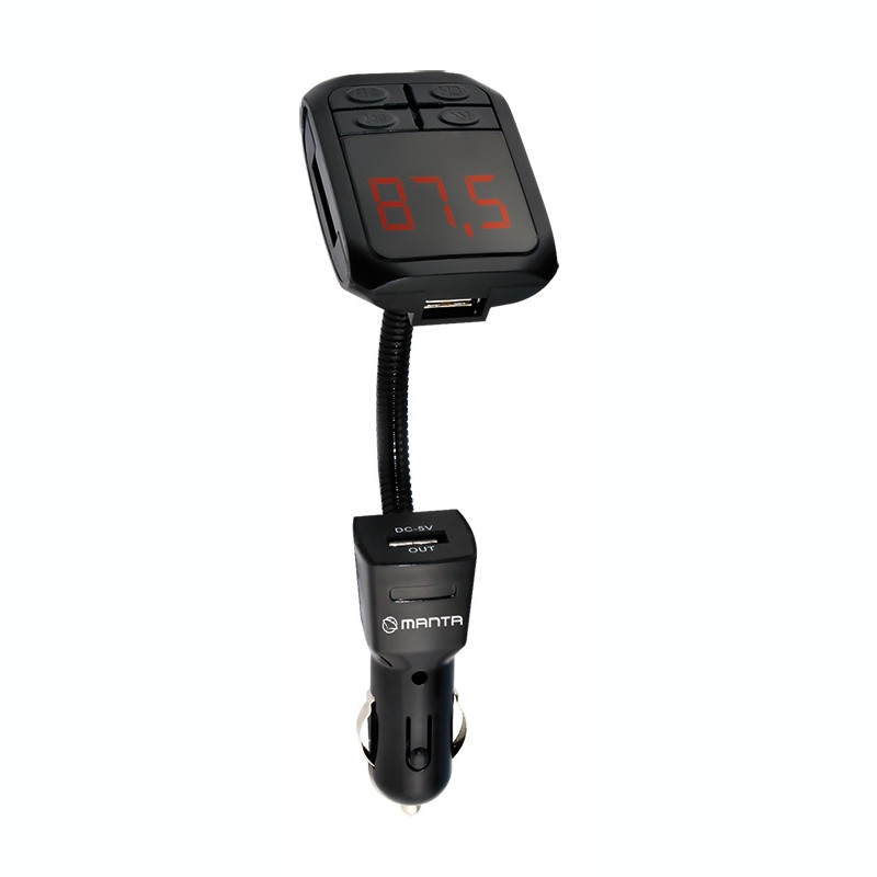 FMT004 är den mest omfattande sändaren i Manta-utbudet. På grund av den speciella designen med en lång arm kan enheten lätt nås av användaren. Förutom de typiska MicroSD- och SD-ingångarna är FMT004 även utrustad med en USB-port, tack vare vilken det är möjligt att spela musik från USB-minnen. En extra USB-port låter dig ladda till exempel en telefon. Sändaren har även ett AUX-uttag, tack vare vilket du kan ansluta vilken ljudkälla som helst.