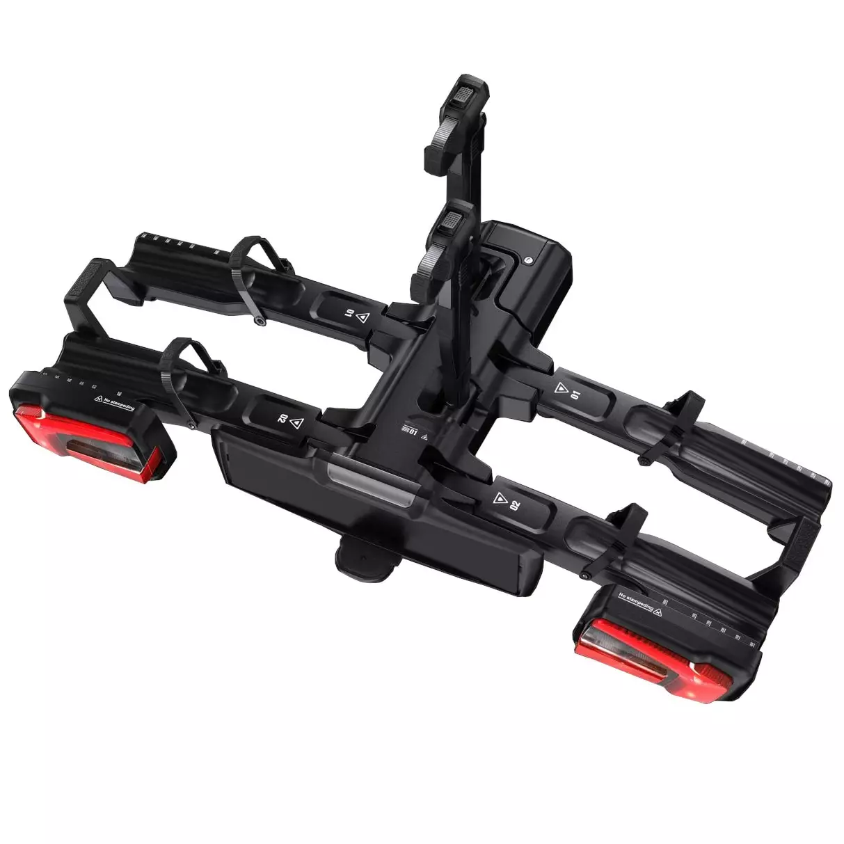 Marknadens snyggaste hopfällbara cykelställ för både vanliga cyklar och de tyngsta elcyklarna. Med en maximal däckbredd på 12 cm passar ställningen även för de vanligaste Fatbike-modellerna. Den helt hopfällbara konstruktionen gör det enkelt att montera, förvara eller transportera, t.ex. i bagageutrymmet på en bil. Det långa avståndet mellan hjulklämmorna gör det möjligt att transportera hjul med stor hjulbas.