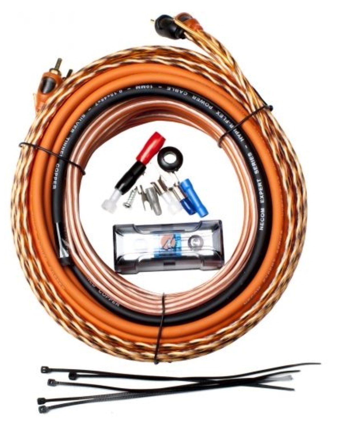 Necom CK-J20 omfattande anslutningssats för förstärkare 20 mm². Anslutningsuppsättningen innehåller en mycket flexibel orange strömkabel (8GA) 5 meter, en orange jordkabel (8GA) 0,9 meter, en RCA -kabel 5 meter och en högtalarkabel 1,5 meter. Alla kablar är mycket flexibla, och RCA -kabeln och högtalarkabeln är också transparenta. Anslutningsuppsättningen innehåller också en MINI-ANL säkringshållare (1 del) och MINI-ANL säkringar 1 x 100A, 1 x 150A, 2 anslutningsslingor 20 mm², två anslutningsgafflar 20 mm², 5 delar gaffel 14-16GA, 3 lock, 3 skruvar och 1 hylsa.