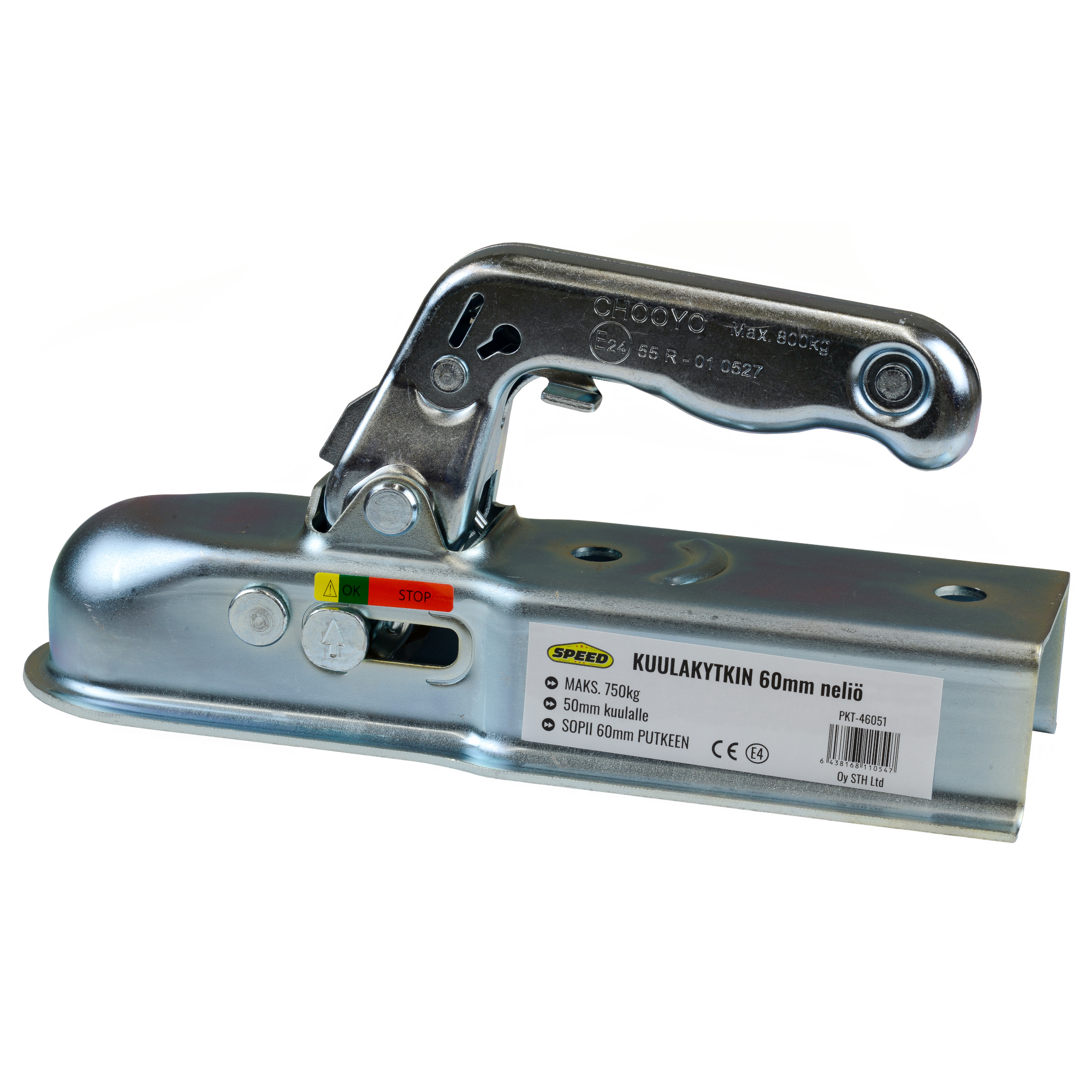 Förzinkad. För 50 mm kula och 60 mm fyrkantigt rör. Godkänd för upp till 750 kg.