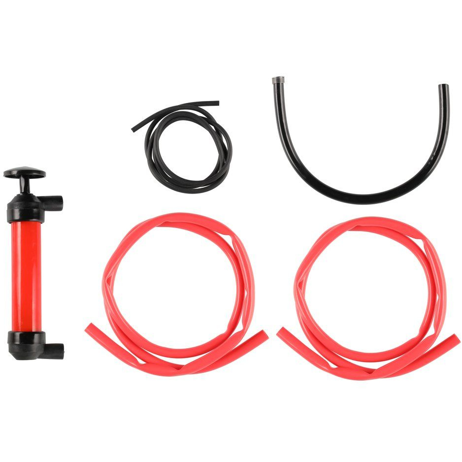 Multifunktionspumpen är ett praktiskt verktyg som passar för många olika ändamål. Denna pump möjliggör överföring av vätskor samt fyllning av däck, bollar och luftmadrasser med luft. Förpackningen innehåller två slangar för vätskeöverföring (127 cm/slang), en slang för oljebyte (123 cm), en luftslang (40 cm) samt slangkopplingar och adaptrar. Pumpen kan användas för att pumpa bränslen, olja och vatten, vilket gör den till ett mångsidigt verktyg. Garanti 1 år.
