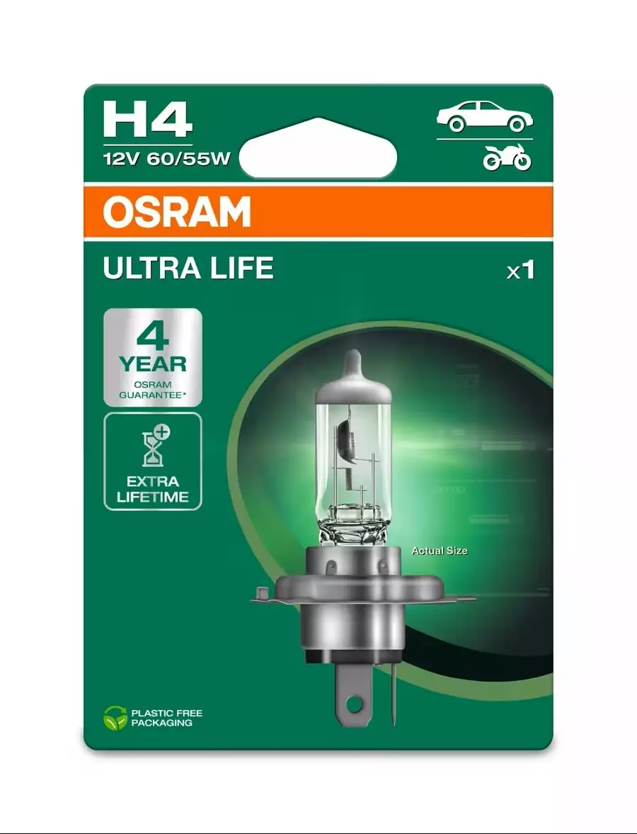 Osram H4 Ultra Life Halogenlampa 12V (60/55W) - Upp till 4x livslängd