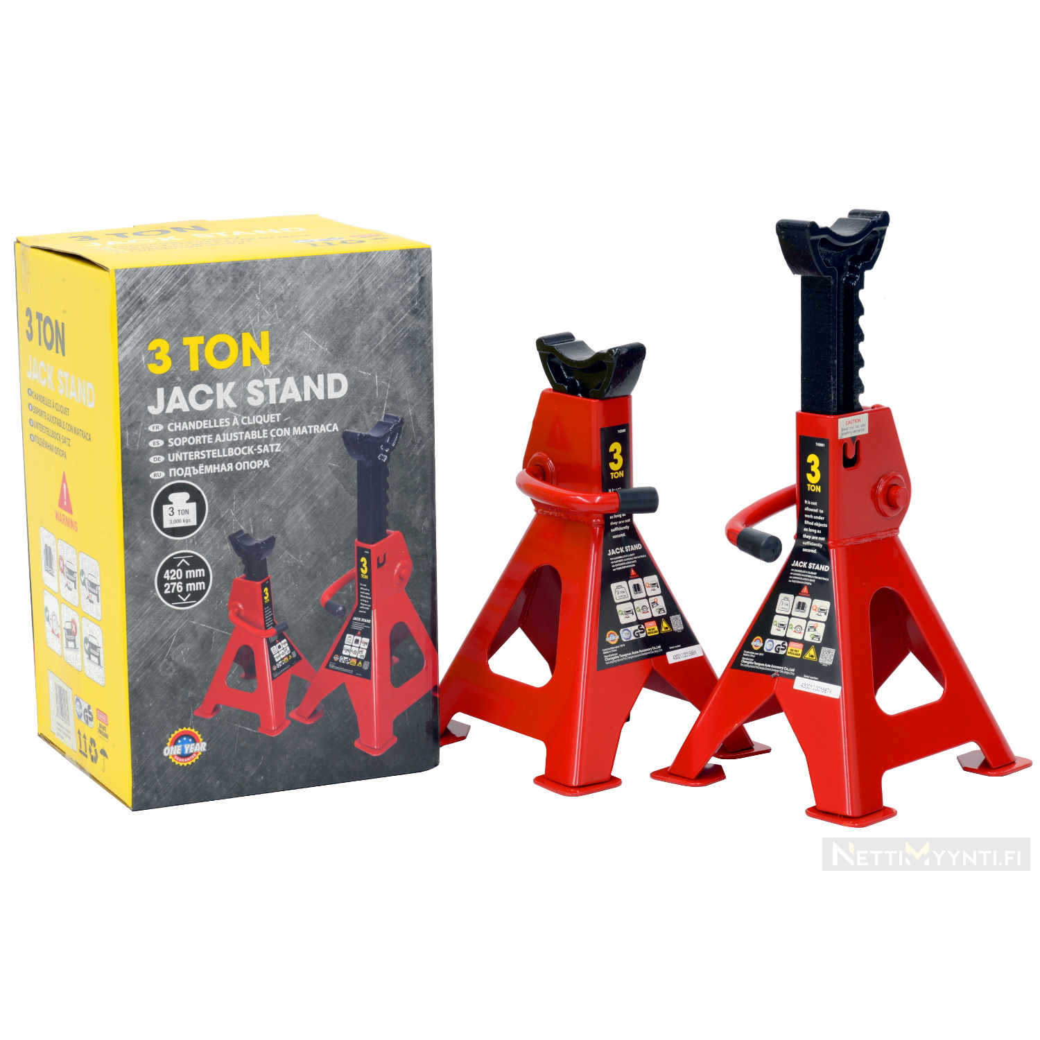 Här har du 2 stycken smidiga pallbockar för att säkrare utföra dina arbeten, man ska aldrig gå under en bil som inte är säkert lyft med pallbockar. 3 ton per pallbock.