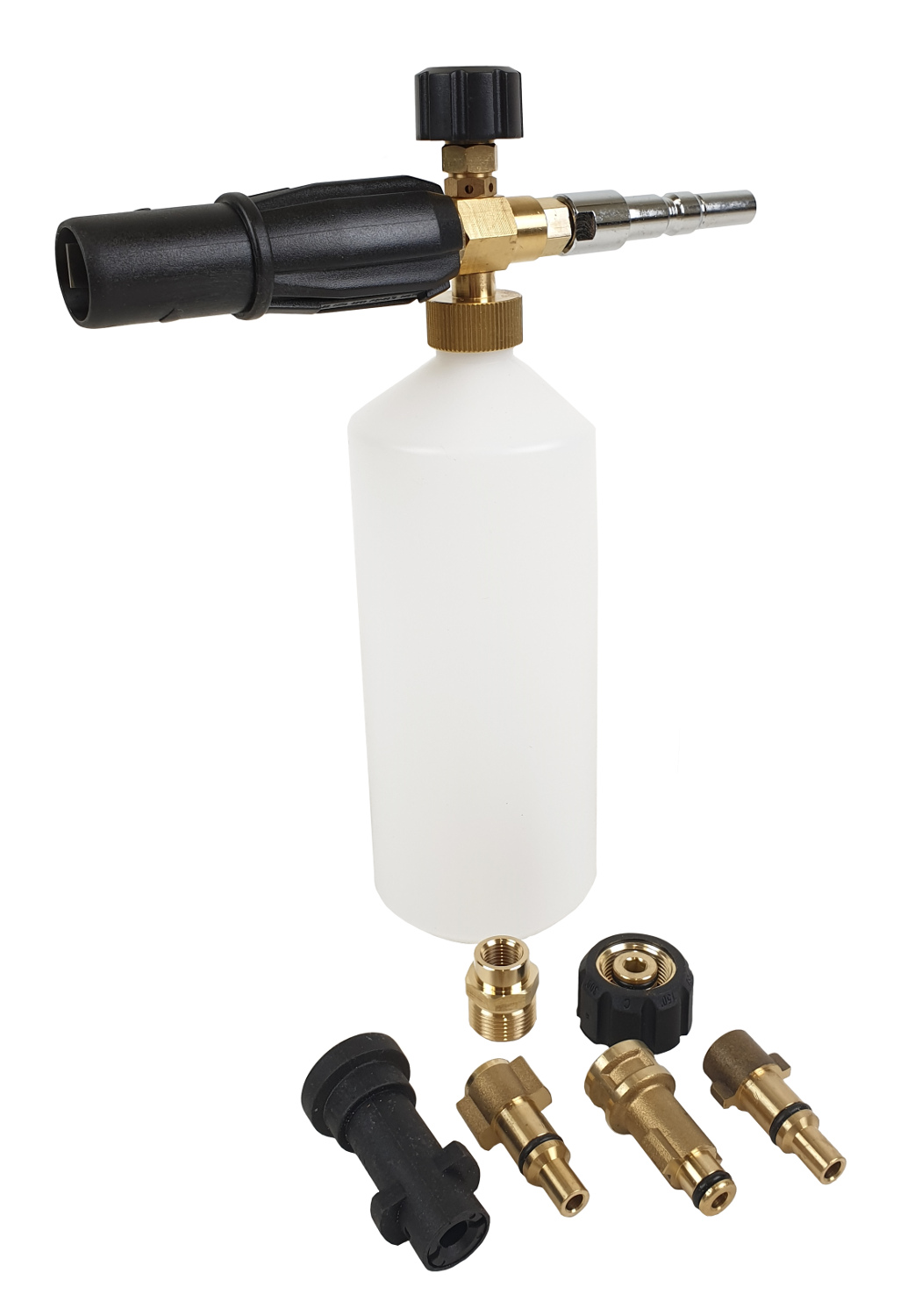 Snow foam skummunstycke. Skummunstycket ansluts till högtryckstvätten istället för munstycksröret och skummunstycket bildar ett långvarigt skum av vatten och tvättmedel på bilens yta, vilket förbättrar avlägsnandet av smuts och du behöver inte ens använda en svamp.