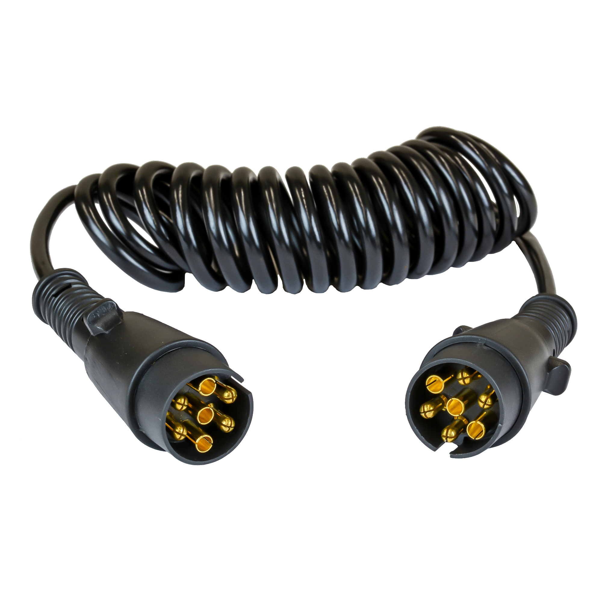 Spiralkabel med 7-polig kontakt i båda ändarna.