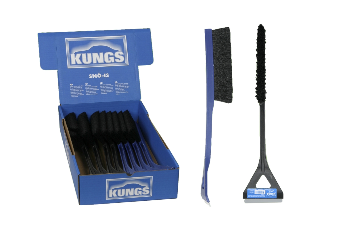 KUNGS Snö-is är en kompakt kombination av snöborste och isskrapa. Den tjocka snöborsten gör det enkelt att borsta snön från bilens yta.