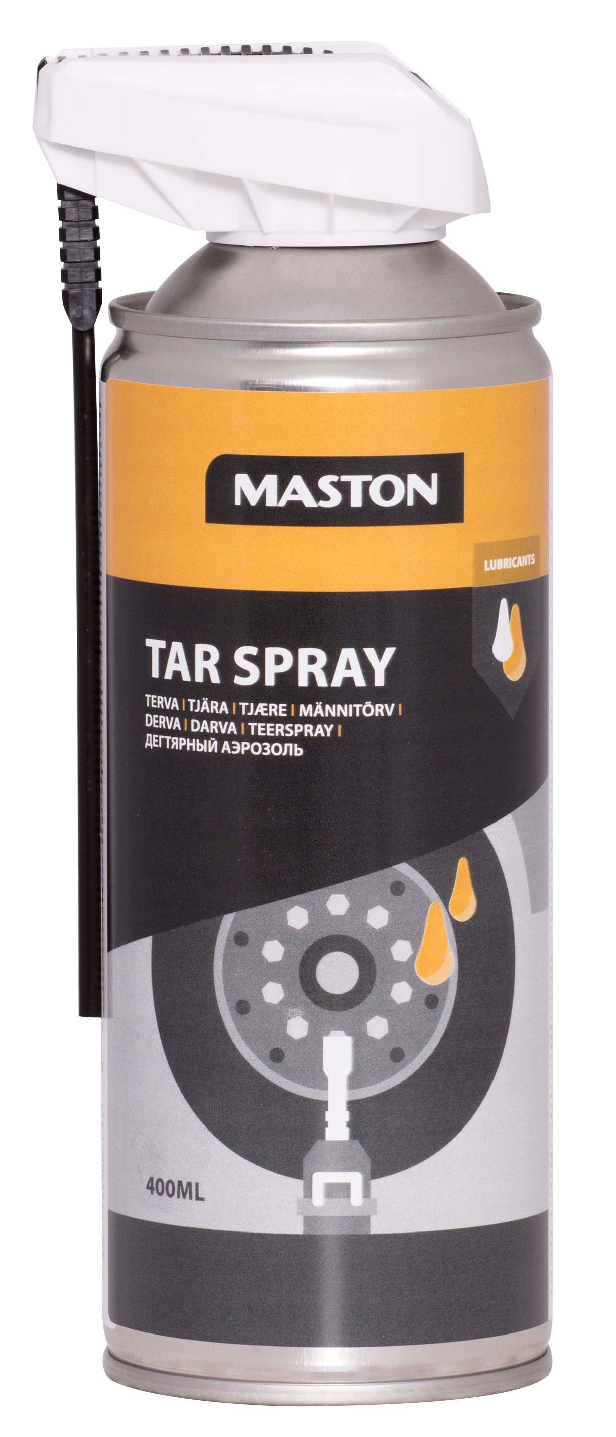 Maston Tjära spray förhindrar effektivt korrosion och förhindrar att skruvar och muttrar fastnar. Lämplig för användning i alla områden där temperaturen är under +70°C grader.