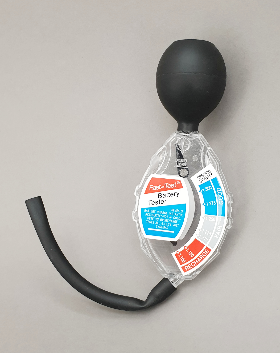 Praktisk syraprovare för kontroll av bilbatterier. Skala som visar batteriets kondition. För 6, 12, 24 V batterier. Längd inkl. slang 33,5 cm.