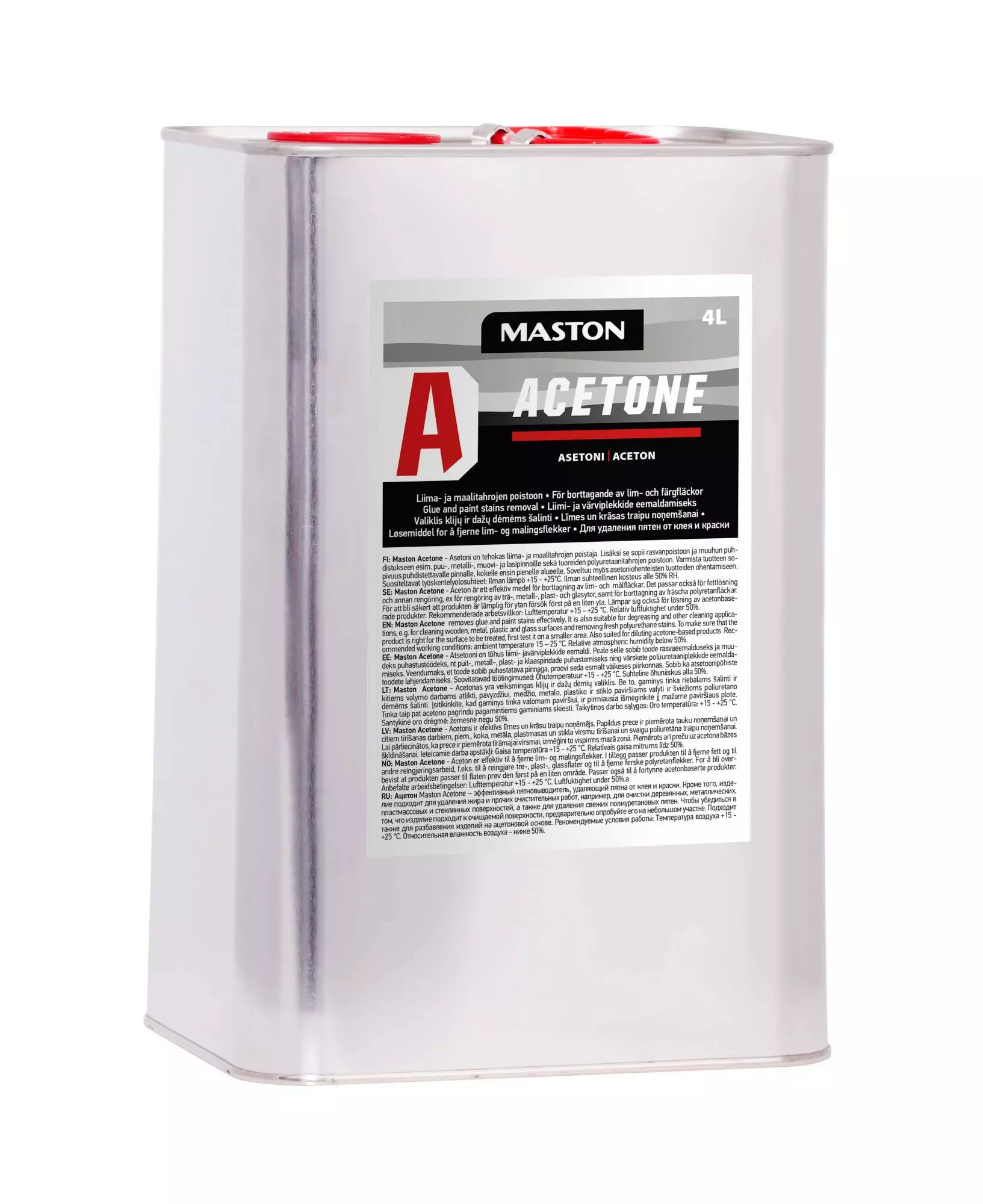 Maston TECmix Aceton är en effektiv borttagare av lim- och färgfläckar.