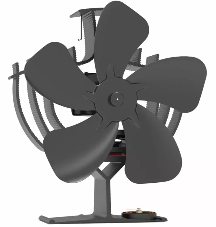Den oscillerande spisfläkten med 5 blad blåser snabbt ut varm luft över ett större område. Oscillationen sker i en 60° radie. Skorstensfläkten genererar en värmestråle från värmen i kaminen eller den öppna spisen, så den behöver inga sladdar eller batterier för att fungera. En effektiv och bekväm värmefläkt för utrymmen som tar tid att värma upp och som vanligtvis kräver extra värmare.