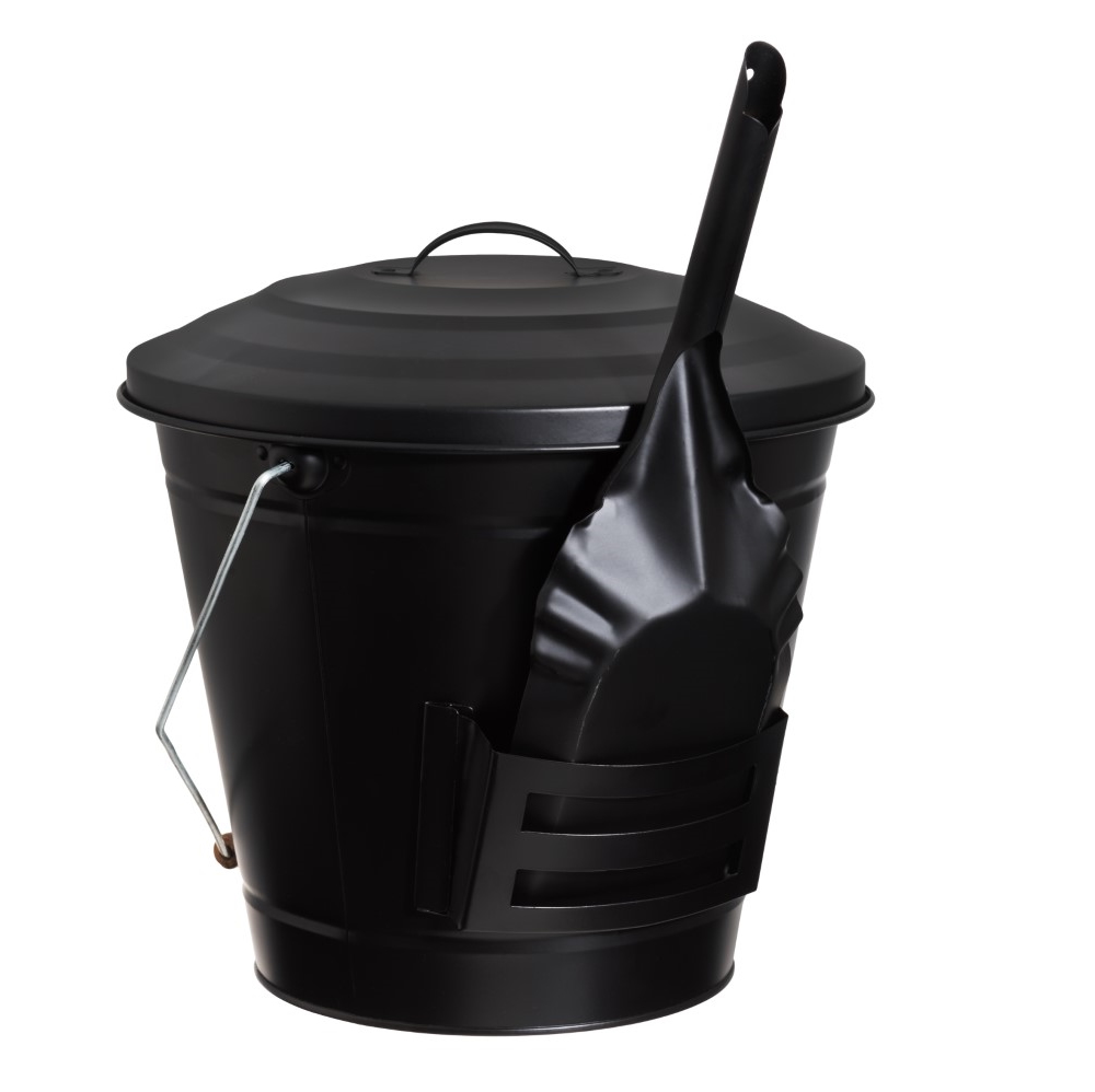Askhink med handtag, lock och spade. Trähandtag på handtaget. En speciell hållare för en spade på sida. Volym 12,5 liter.