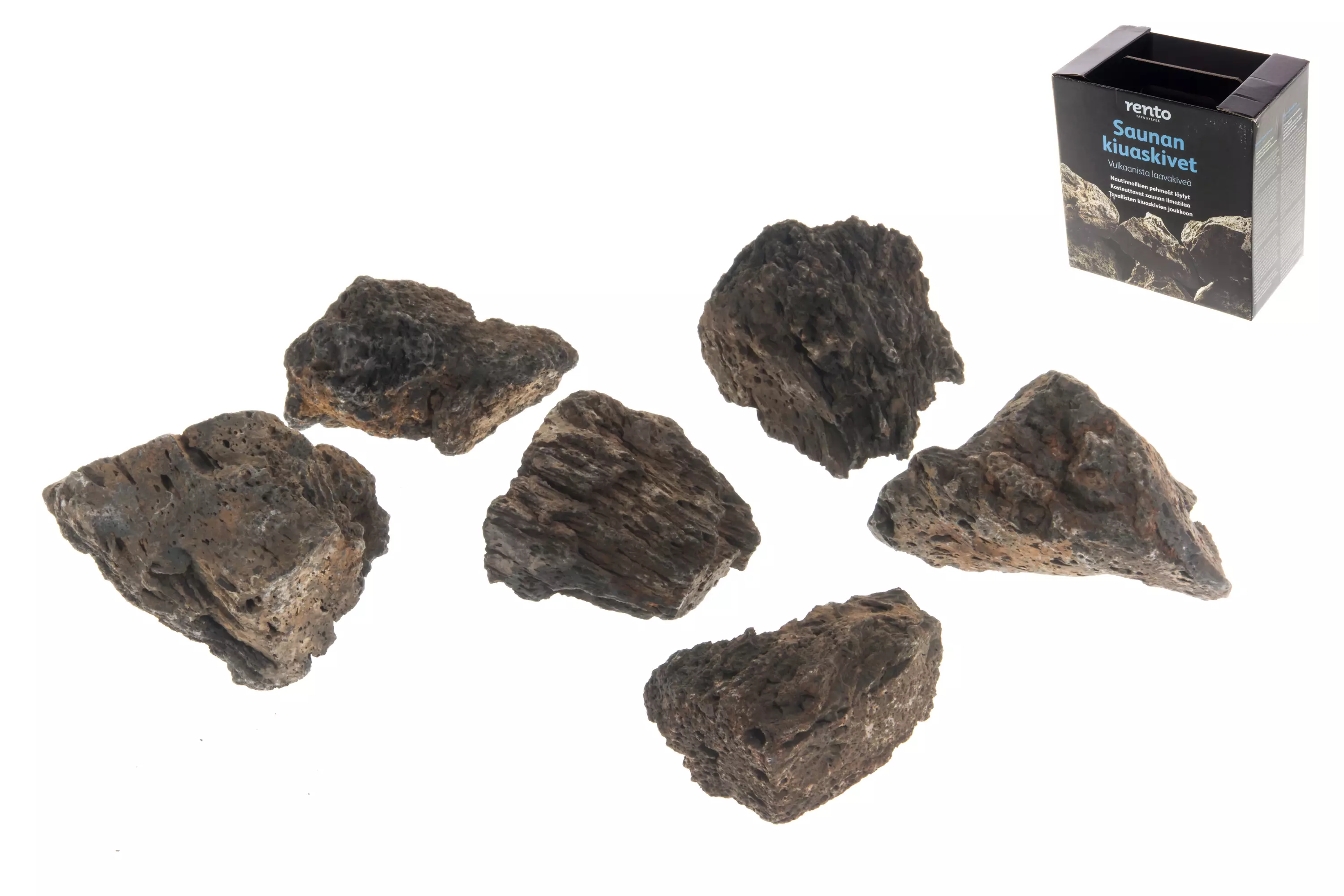 Rento Bastu vulkaniska kaminstenar erbjuder en unik och förbättrad bastuupplevelse. Dessa 2,5 kilogram vulkaniska stenar är designade för att passa alla standardkaminer, inklusive vanliga spisstenar.