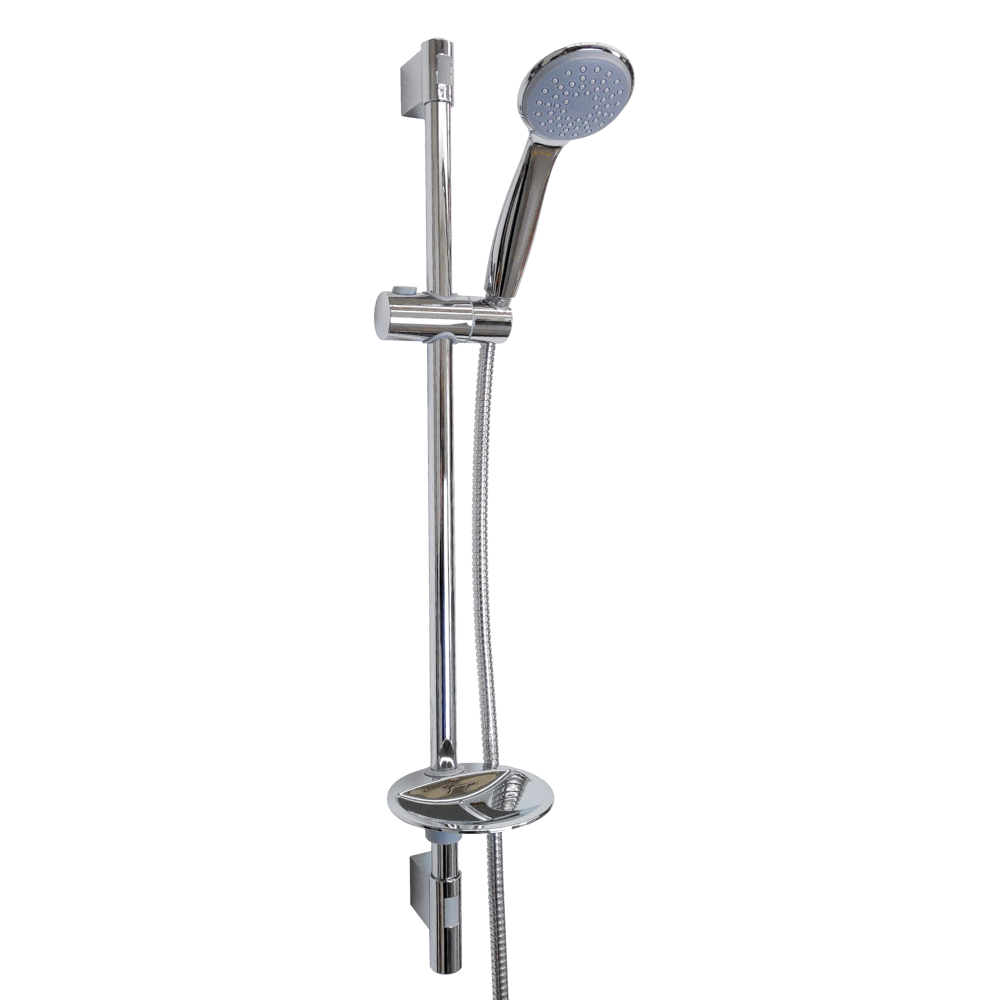 Duschset; justerbar stång 75cm, handdusch 85mm, slang 1,5m, tvålhållare. Enkel installation.