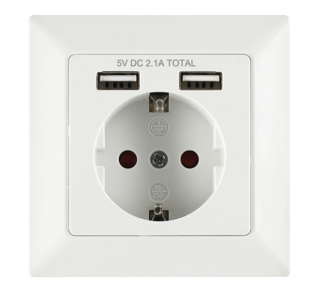 Ett mycket bekvämt uttag med två USB-anslutningar och ett Schuko-uttag möjliggör mångsidig användning. Uttaget är infällt och har en maximal kapacitet på 3680W.