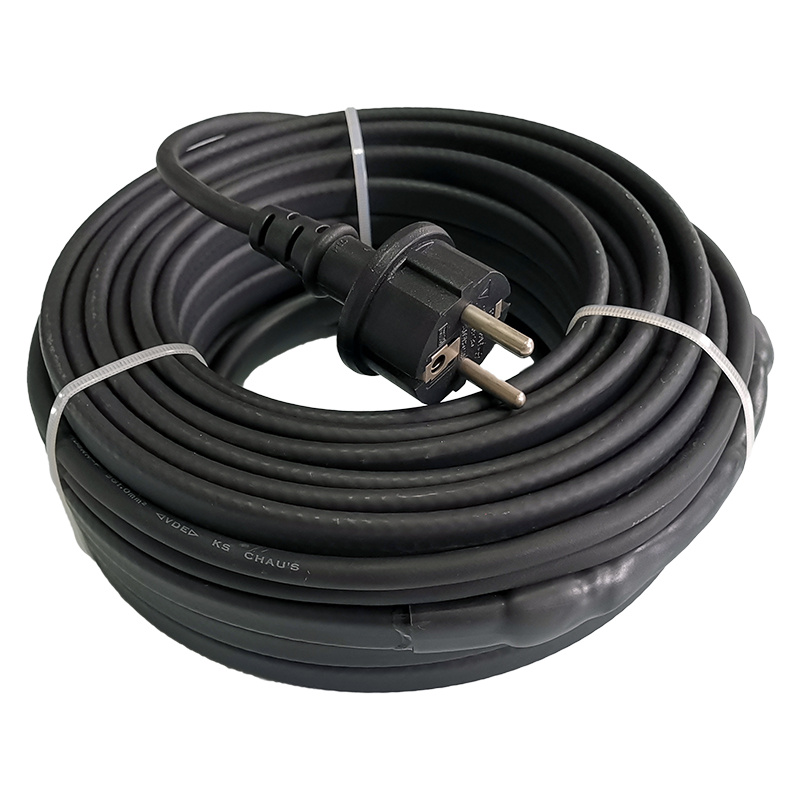 2m anslutningskabel H07RN.f 3x1,5 och en Schuko-kontakt. Kabeln anpassar effekten efter omgivningen och överhettas inte. Applikationer tak och hängrännor, avlopp, vattenrör och tankar, ventiler, flänsar.