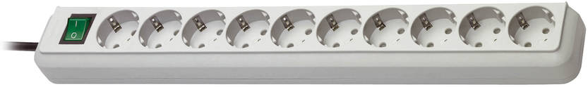 Eco-Line 10-vägs grenuttag från Brennenstuhl i ljusgrå och 3 m kabel övertygar med sin kvalitet och säkerhet på alla områden.Den har inte bara ett högre kontaktskydd utan övertygar också med följande egenskaper: • Belyst säkerhetsbrytare, tvåpolig till/från omkopplingsbar• Vägguttag med jordkontakt i 45° arrangemang, även för vinklade stickproppar• Plug-in system DE