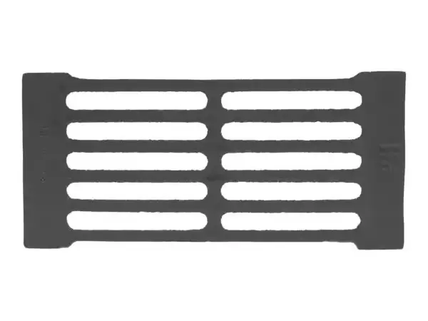 En slitstark 1B-rost i gjutjärn utan ram. Gjutjärn tål höga temperaturer och hård användning, vilket gör den till ett utmärkt val som ersättningsrost i exempelvis eldstäder och värmeenheter. Innermåttet är 135 × 240 mm och infällningsmåtten (yttermått) 135 × 290 × 13 mm.