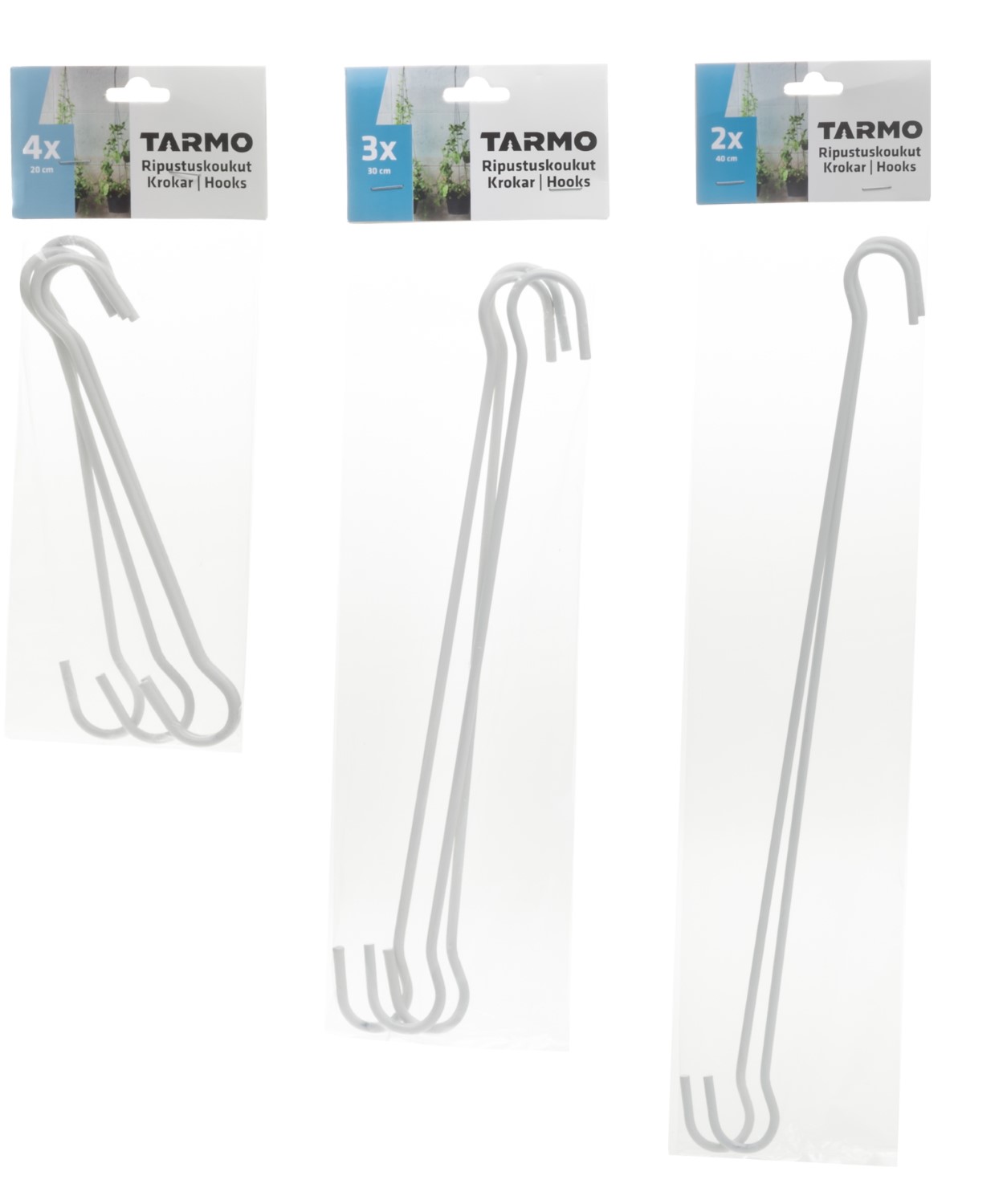 Krokar vit Tarmo Med dessa hängkrokar kan du hänga såväl blommor som lyktor och ljusstakar! Traditionell S-krok för alla typer av upphängning. Storlekar: 4 st 20cm/påse 3 st 30cm/påse 2 st... Läs mer
