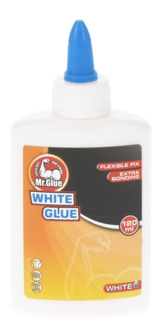 Vitt MR.Glue universallim 120 ml, passar för många material, snabbtorkande, enkel att använda.