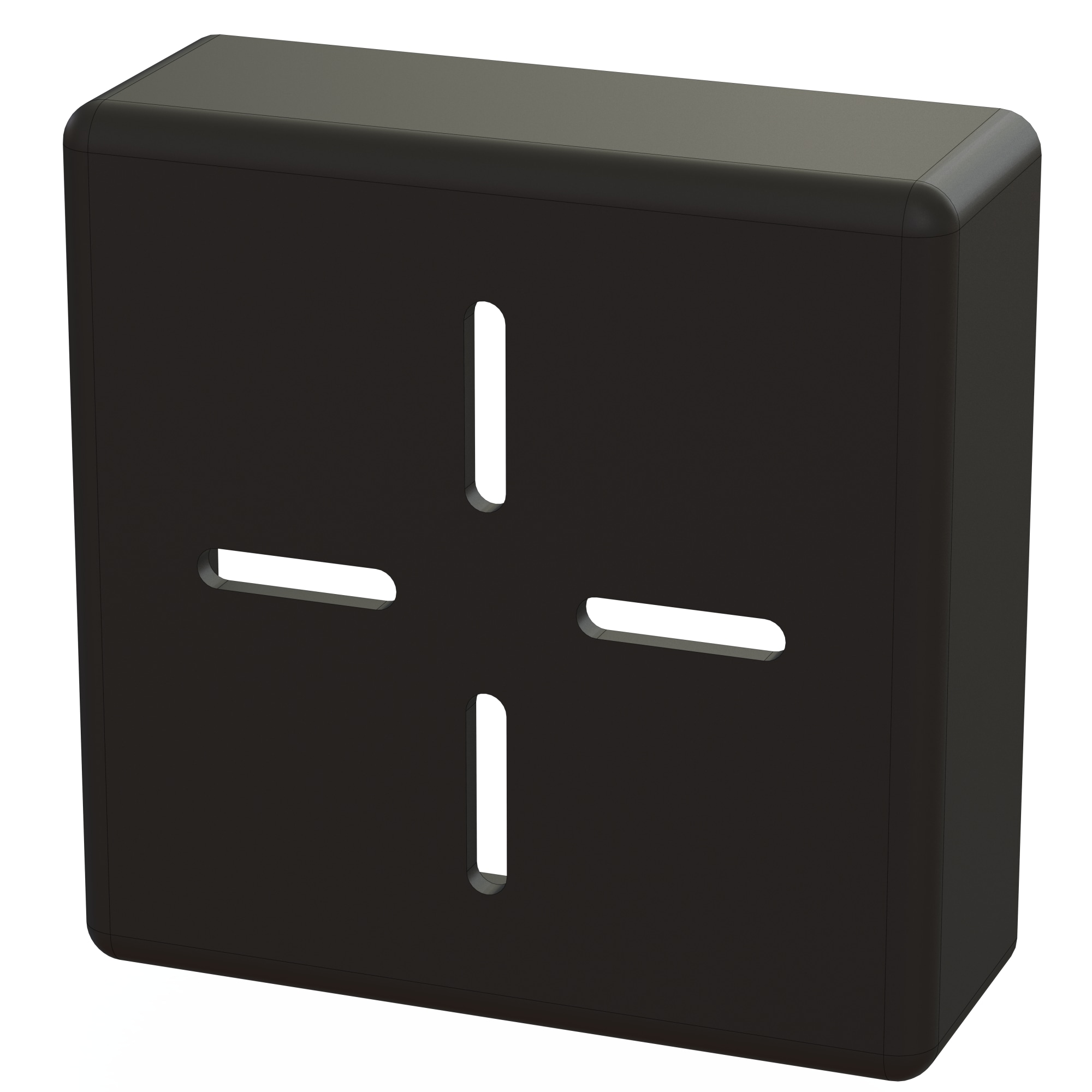 Ändplugg av plast med dräneringshål för Railock 40 monteringsskenor. Svart färg."Svart ändplugg med dräneringshål för Railock 40 installationsskena.