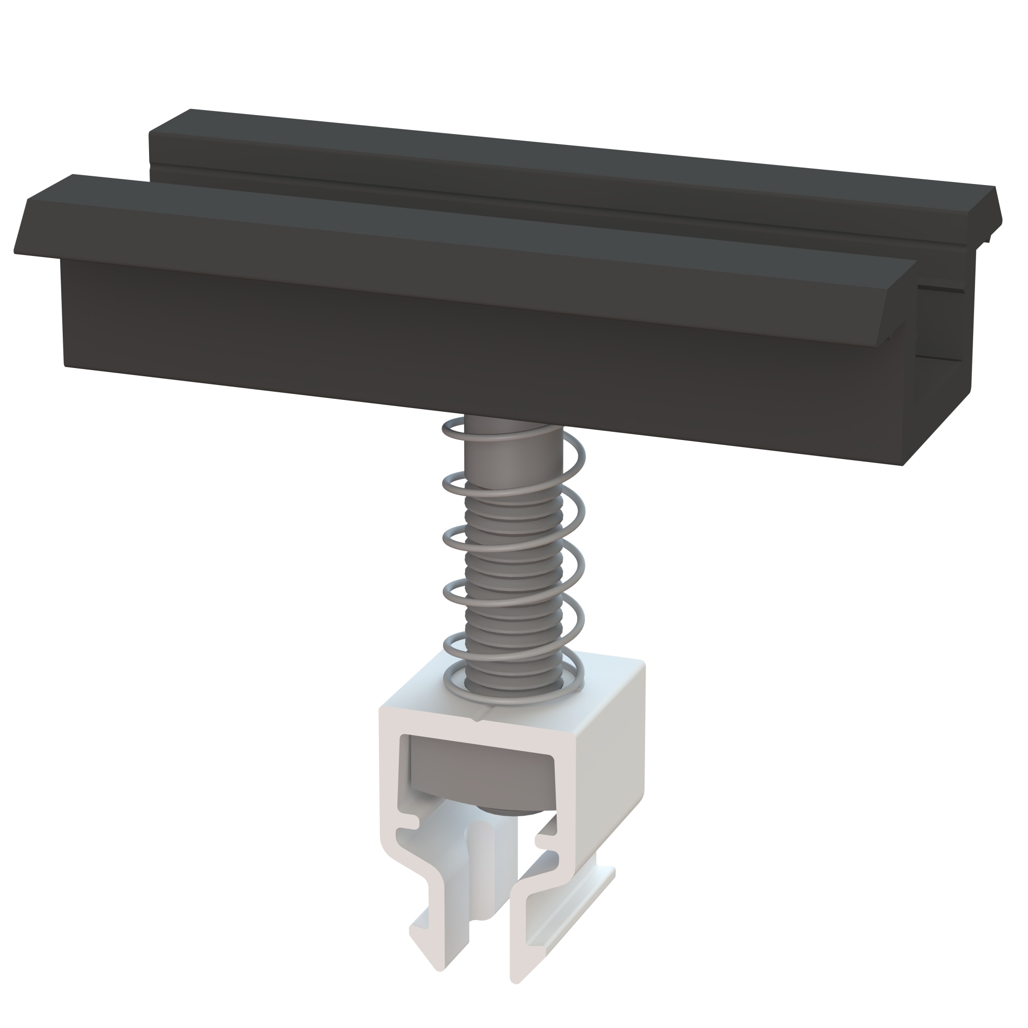 Centralt fäste för att fästa solpanelen på installationsskenan. Färdig monterad. Fjäderbelastad spännbult och markstift. Kompatibel med Railock 40 monteringsskena och solpaneler med en ramhöjd på 35 mm.