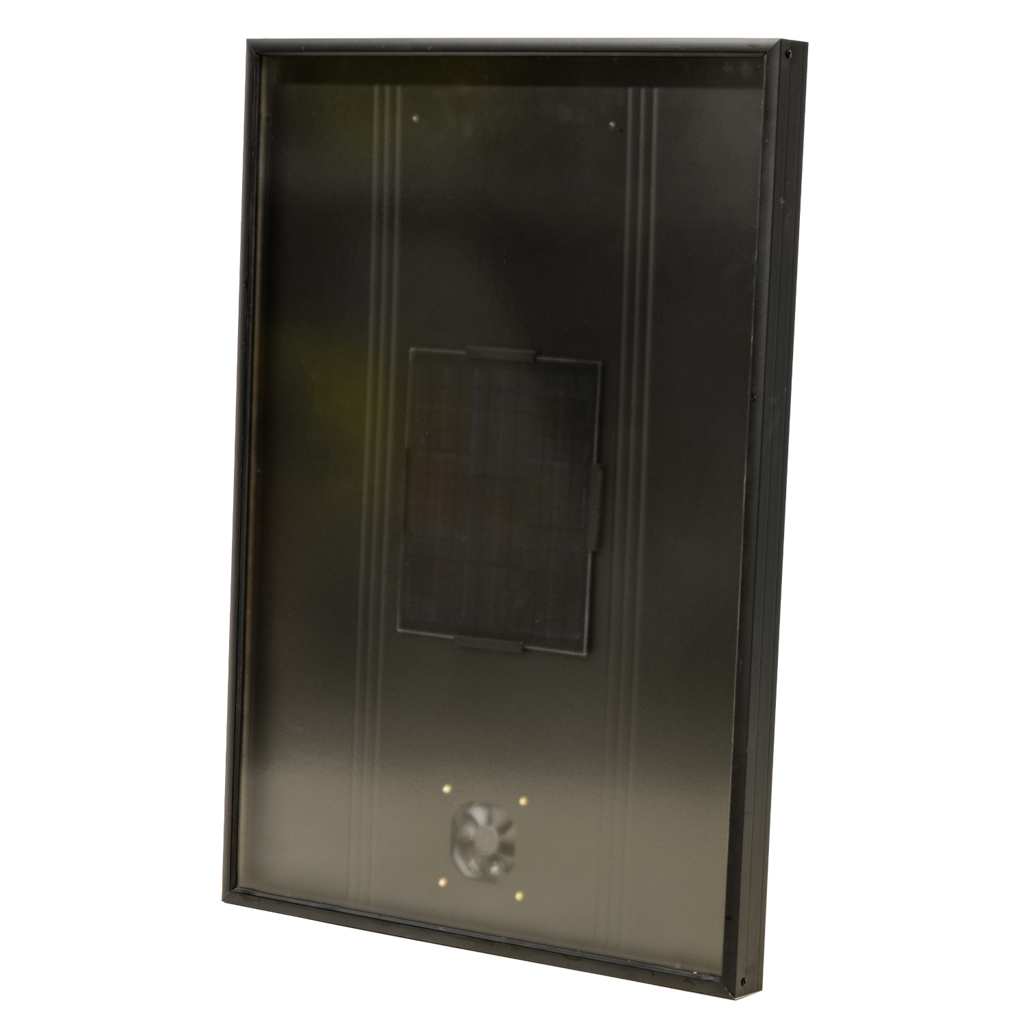 - Solfläkten suger den svala luften från undersidan av panelen och cirkulerar den genom solsamlaren, värmer och torkar luften, in får du torr, varm och frisk luft.