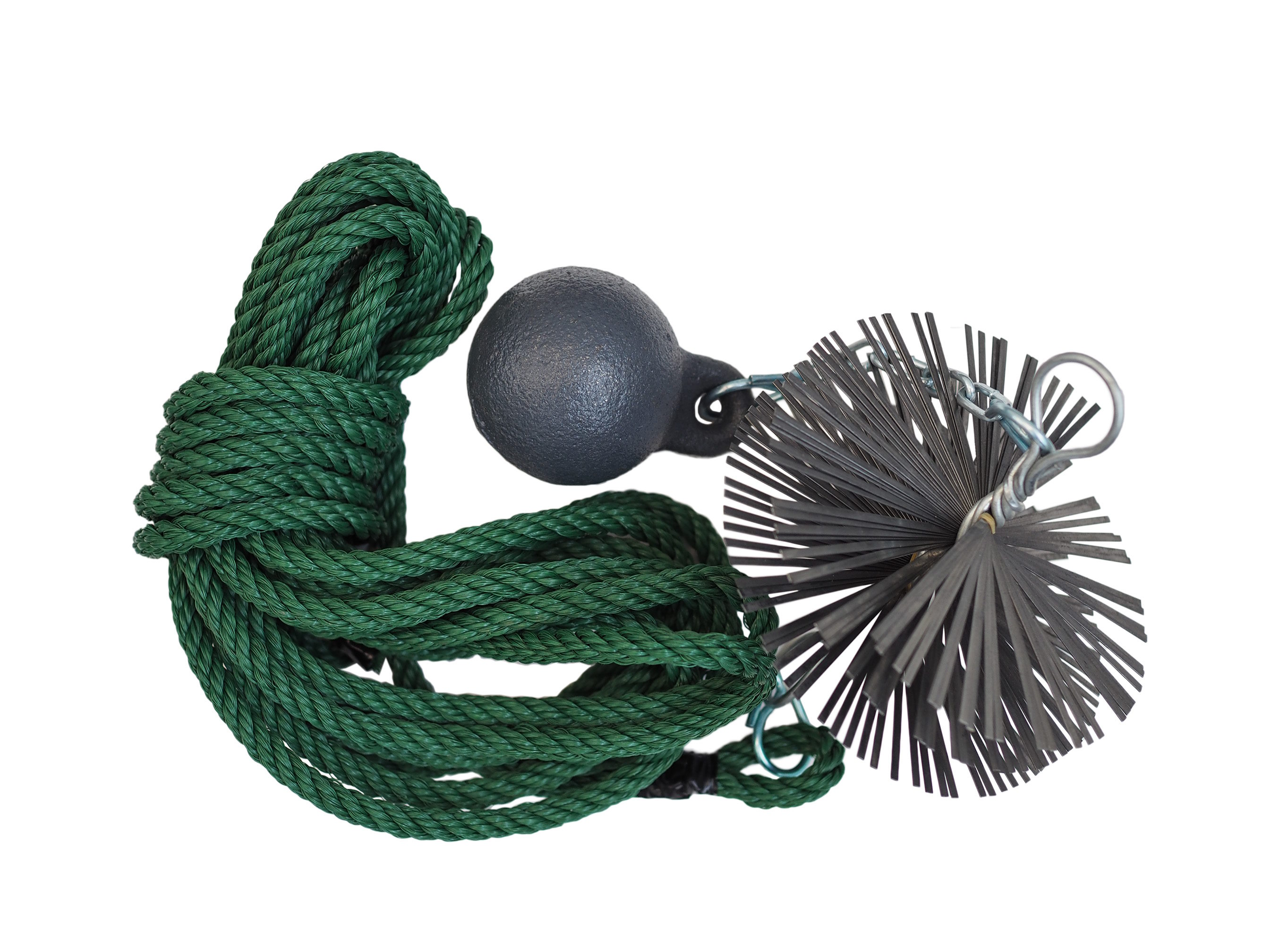 Sotrengöringsset med 200 mm stålborste. Längden på repet är 10m och vikten är 2,25kg.