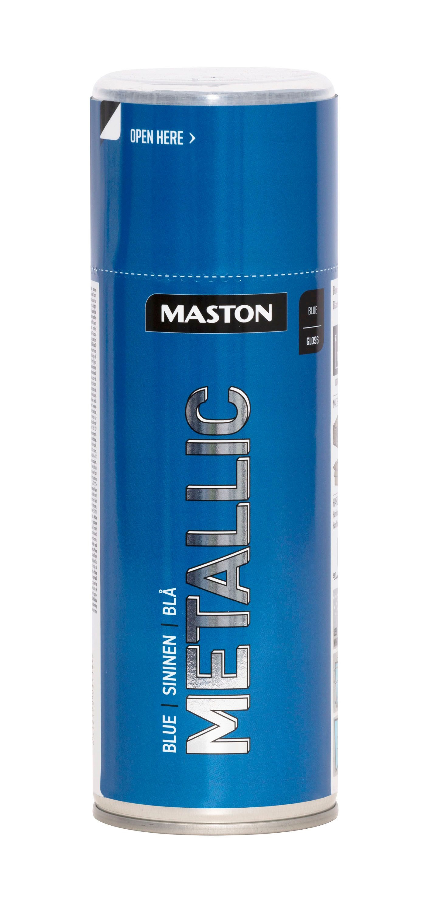 Maston Metallic är en högkvalitativ akrylsprayfärg med metalliska pigment. Färgen torkar snabbt och ytan blir slät och blank. Lämplig för många ytor som metall, trä, sten, glas och de flesta plastytor.