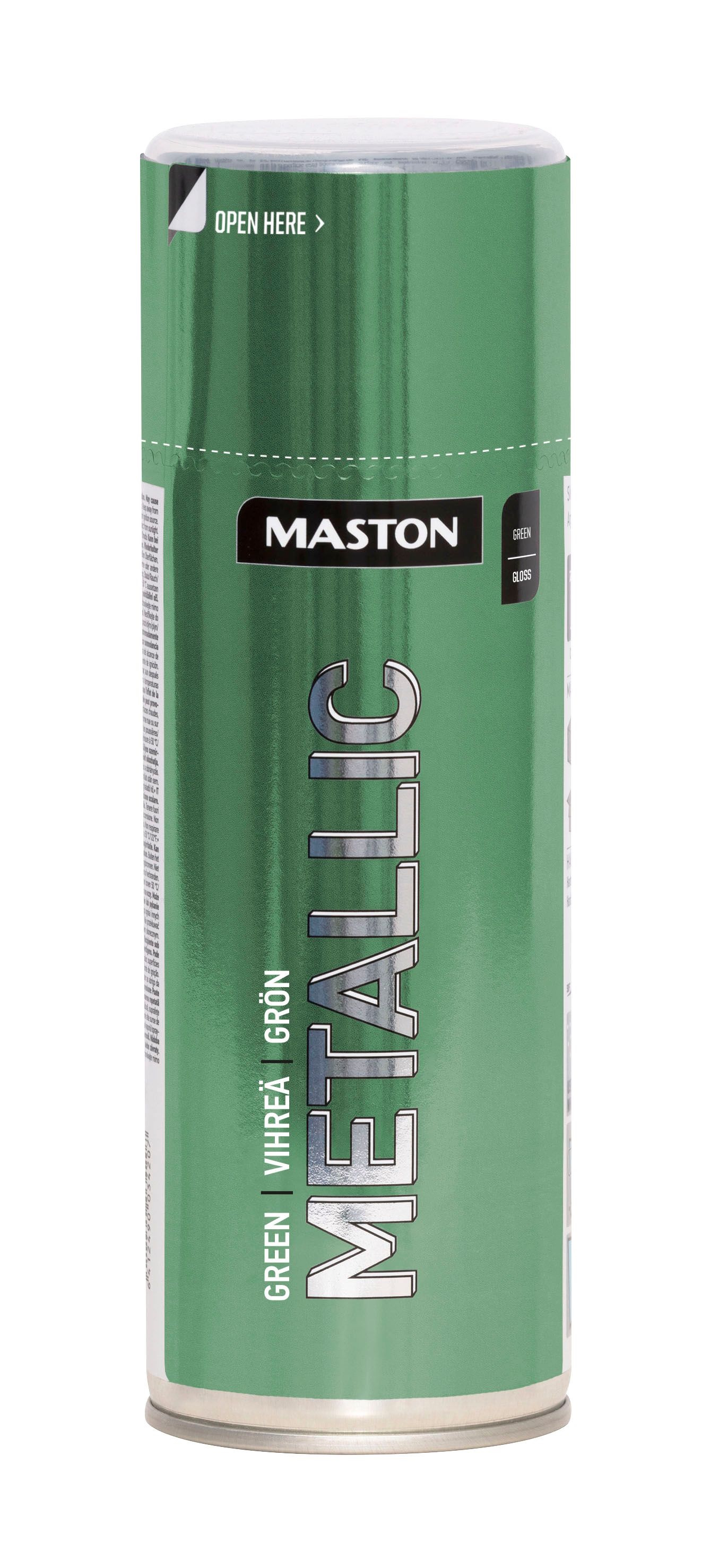 Maston Metallic är en högkvalitativ akrylsprayfärg med metalliska pigment. Färgen torkar snabbt och ytan blir slät och blank. Lämplig för många ytor som metall, trä, sten, glas och de flesta plastytor.