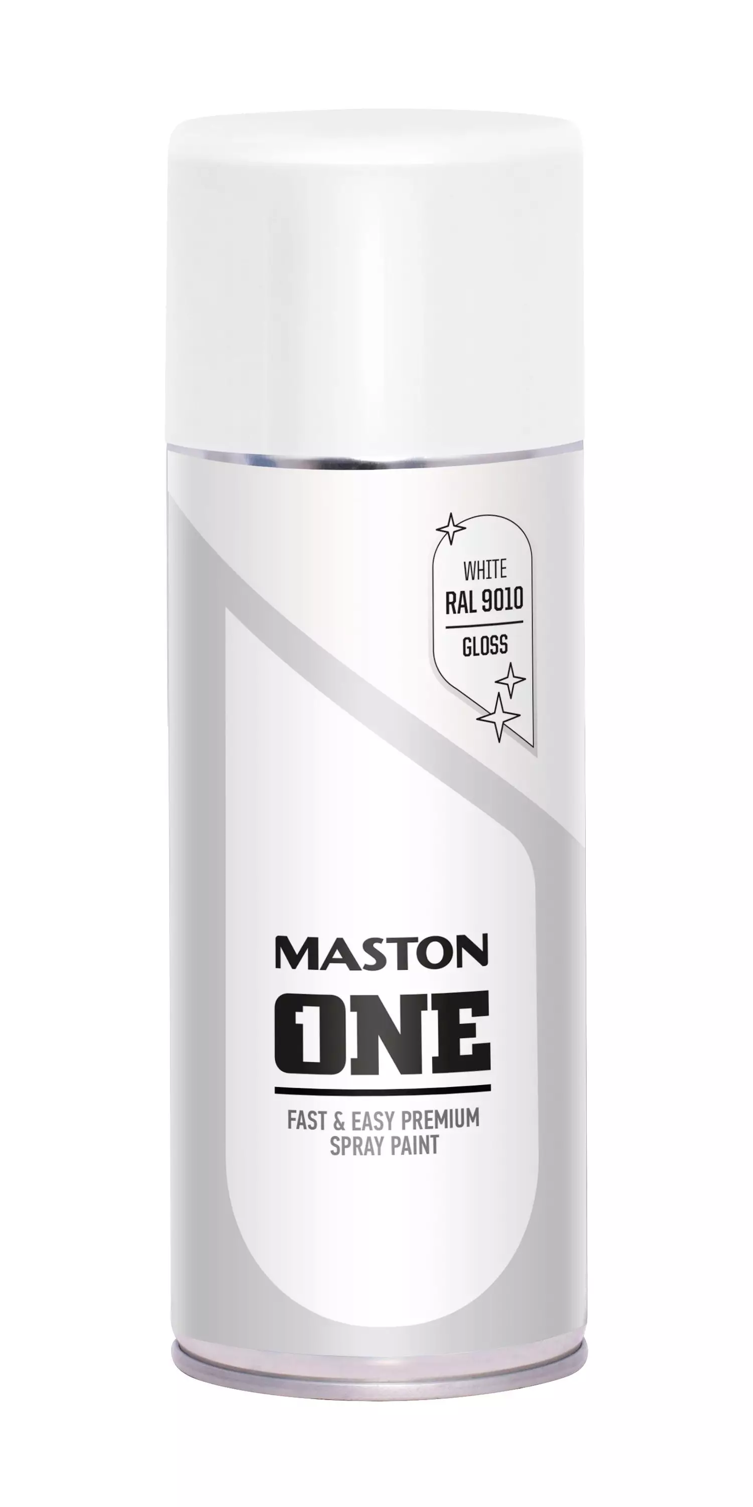Maston One® sprayfärg - gör målningen enkel och snabb. Maston One® akrylfärg är lämplig för praktiskt taget alla ytor, inom- och utomhus. Maston One® färgserien har allt du behöver, primers, topplacker och lacker i alla glanser och i flera olika färgalternativ. Färgen har utmärkt vidhäftning.
