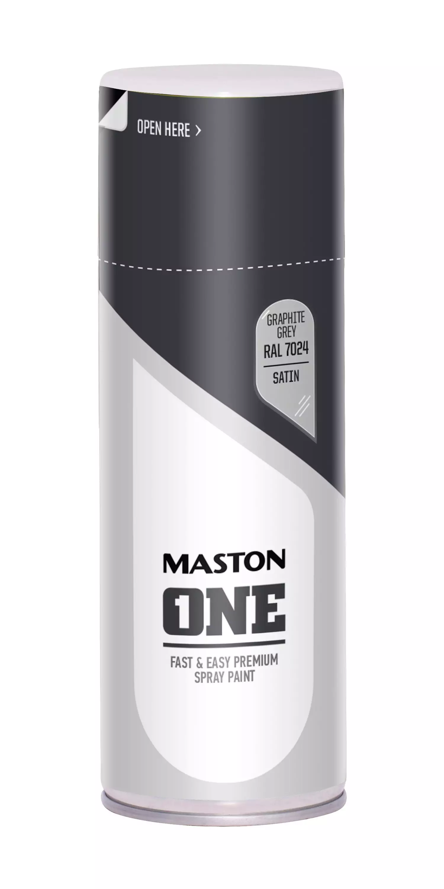Maston One® sprayfärg - gör målningen enkel och snabb. Maston One® akrylfärg är lämplig för praktiskt taget alla ytor, inom- och utomhus. Maston One® färgserien har allt du behöver, primers, topplacker och lacker i alla glanser och i flera olika färgalternativ. Färgen har utmärkt vidhäftning.