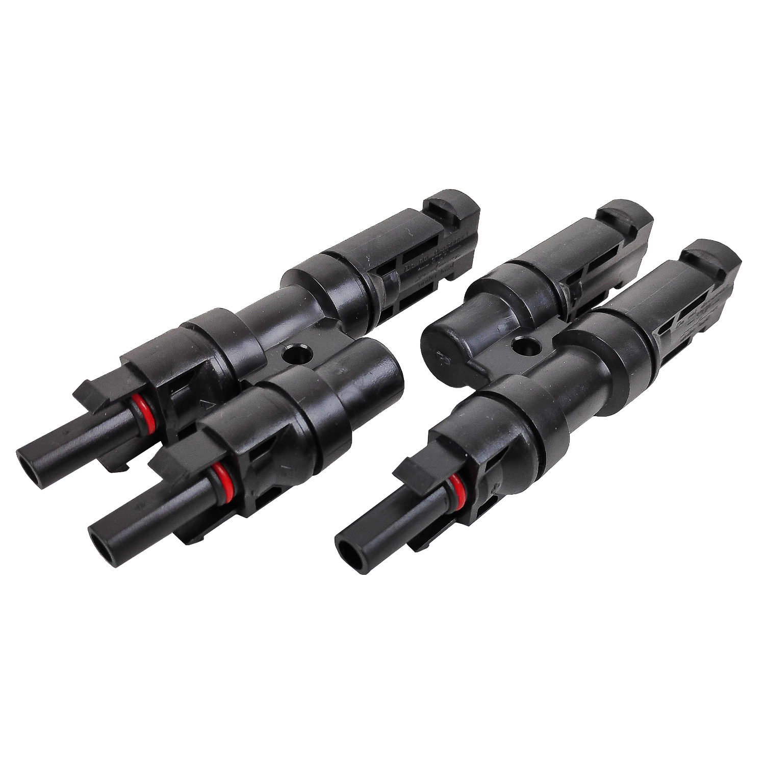 Ett MC4-typ Y-kopplingspar som används för parallellkoppling av solpanelkablarna. Lämplig för tvärsnitt på 2,5mm², 4mm² och 6mm². Nominell spänning 1000V, nominell ström 30A (4mm²).