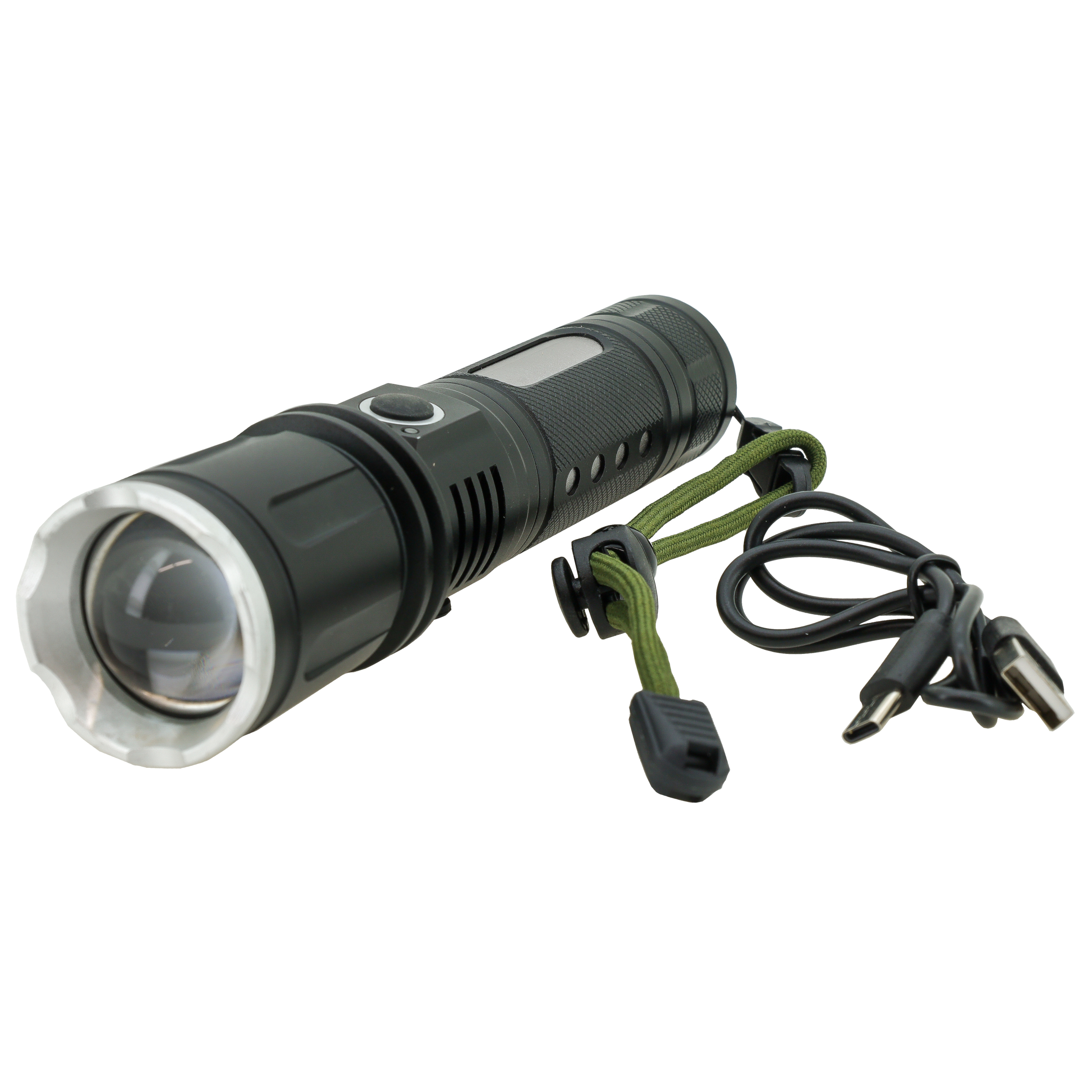 Uppladdningsbar led ficklampa med 1500 lm ljuseffekt och justerbar stråle. Med denna högkvalitativa aluminiuminramade ficklampa kan du gå, arbeta och sporta i mörkret med nöje tack vare den effektiva belysningen. Ficklampan har en konvex Rex-lins, vars stråle kan ställas in steglöst från spotlight till bred stråle. På så sätt får du rätt ljusstyrka och ljusstrålens omfattning för varje situation. Ljusstrålen på den kraftfulla LED-ficklampan når upp till 300 meter.