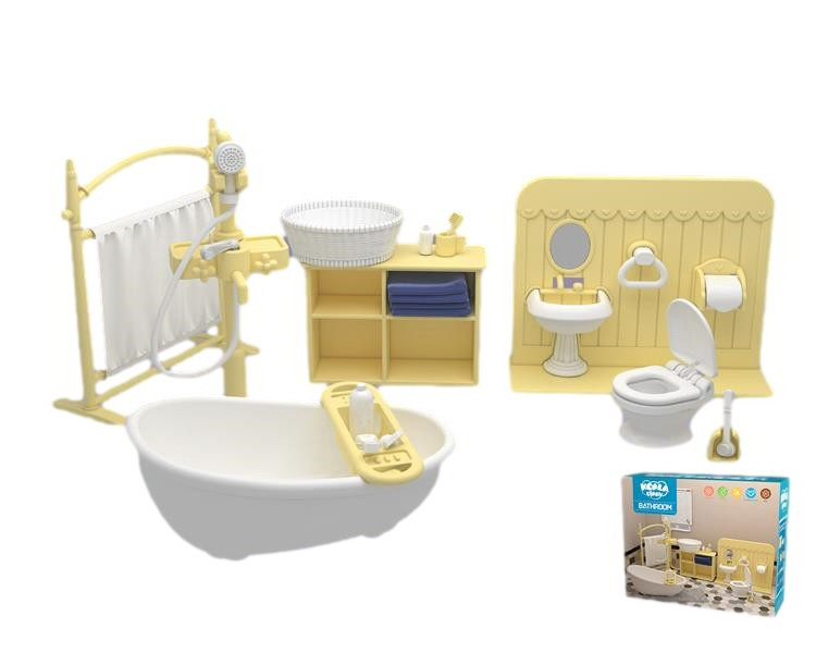 En vacker lantlig romantisk atmosfär för dockhusets badrum. Innehåller t.ex. toalett, handdukar, badkar! Åldersrekommendation 3+ år. Produktmått: 20 x 16 x 6 cm - 0,16 kg