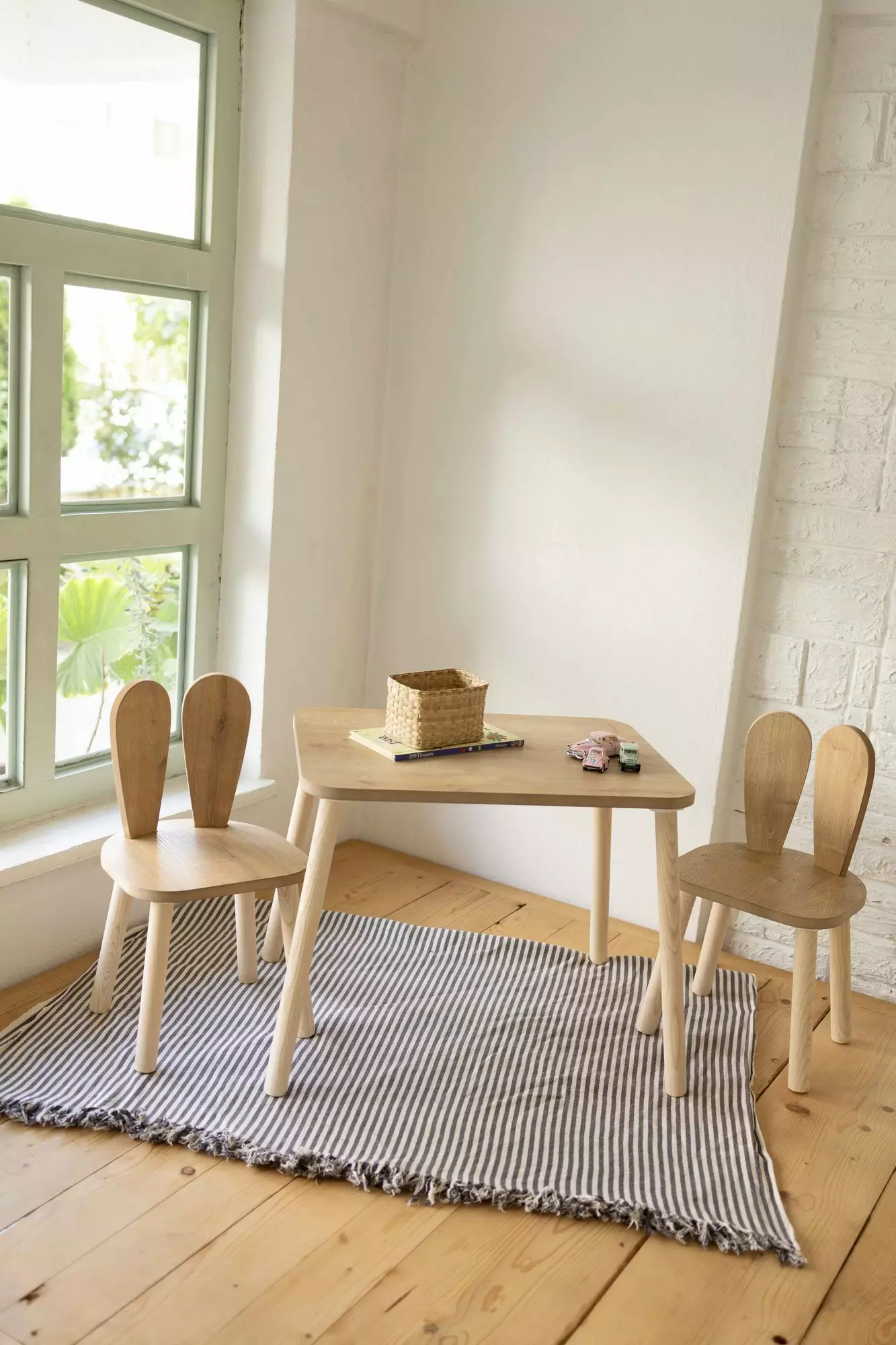 Du kan vara säker på att detta barnbordsset inte bara är bedårande utan också säkert för ditt barn. De robusta benen i bokträ ger stabilitet, medan mdf-konstruktionen garanterar långvarig användning.
