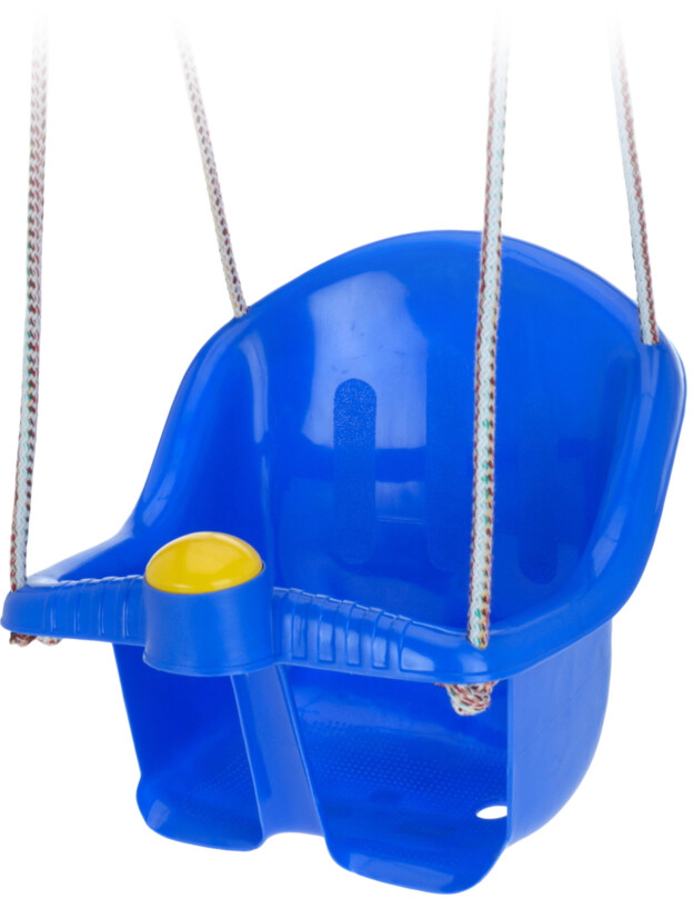 Barnsäker gunga i sex färger, polypropen. Inkluderar rep. Mått: 40x35,5x35 cm, vikt 0,82 kg.