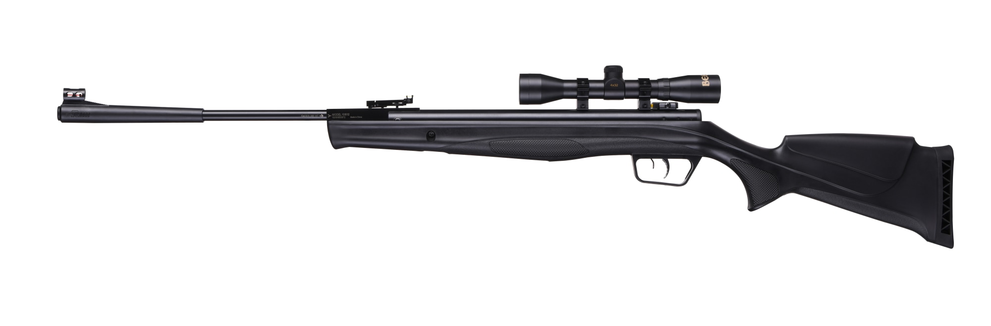 Noggrann, mycket effektiv och pålitlig fjäderbelastad luftgevär med en syntetisk svart kula. Medföljer även ett kikarsikte med stativ.
