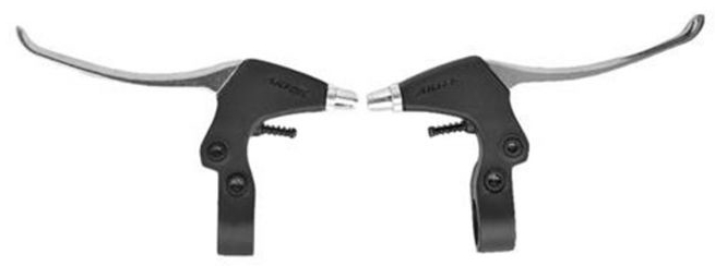 Nexelo bromshandtag är gjord av aluminium och plast, typ V-broms, 4-finger, plastfäste. Handbromspar färg svart-silver, vikt 184g.