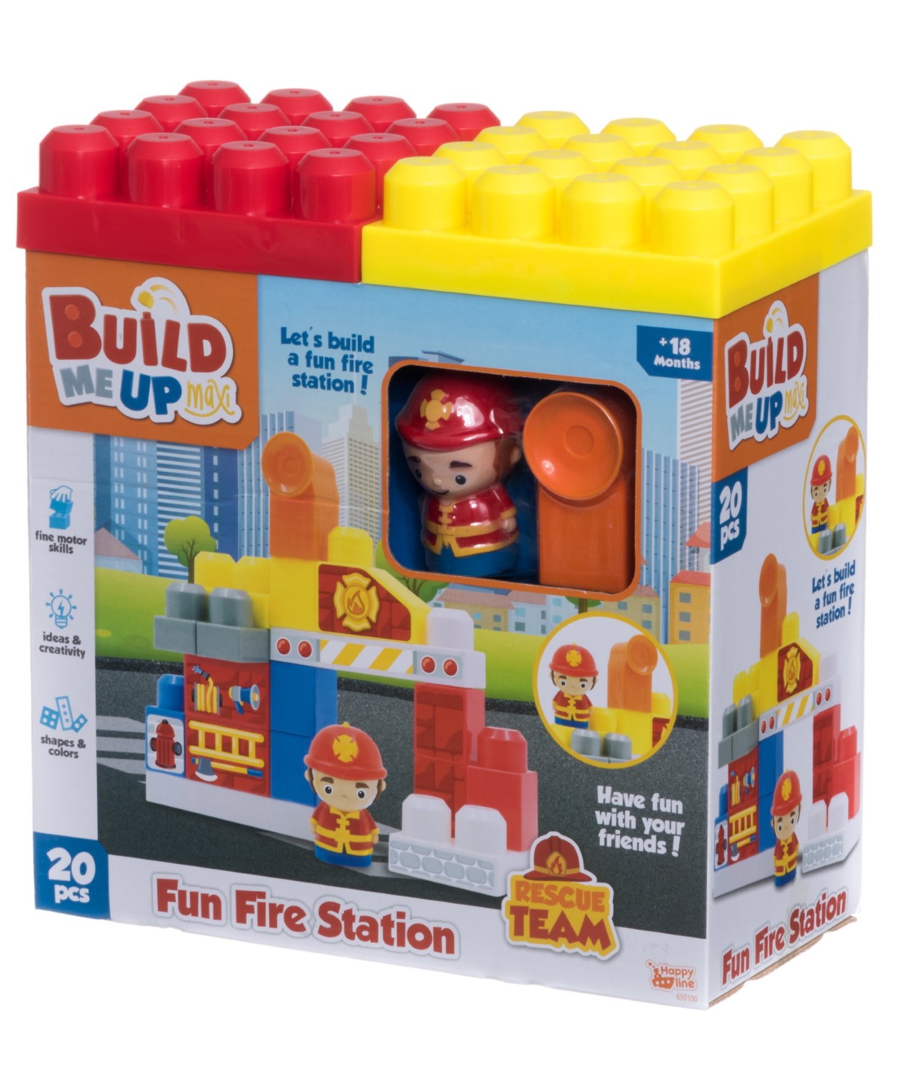 Byggklossar Maxi 20 st brandstation Stora byggsats med byggklossar för små byggare. Paketet innehåller nödvändiga block för brandstationen och en brandman. Åldersrekommendation 18 månader + Förpackning 12,5 x 25 x 27 cm