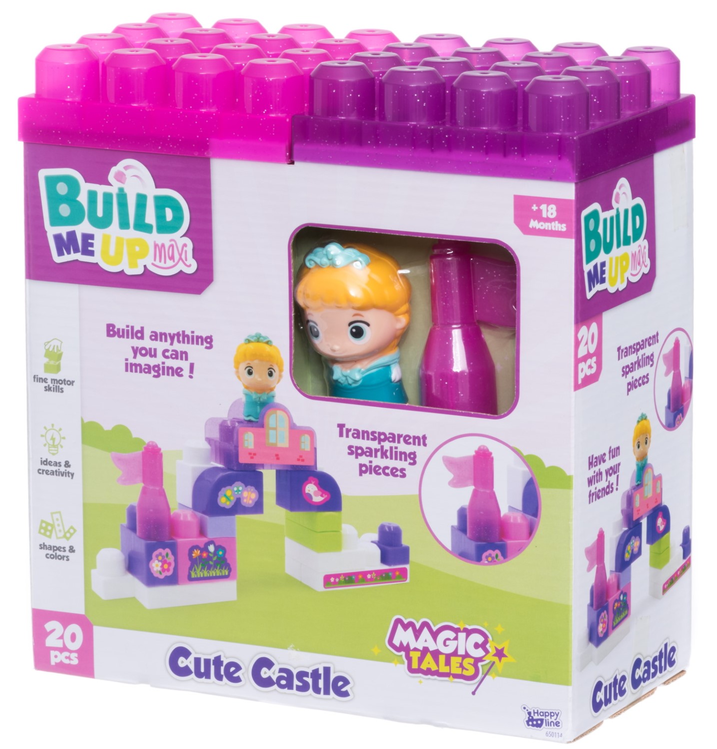 Stora byggsats med byggklossar för små byggare. Paketet innehåller de nödvändiga blocken för prinsessans slott och prinsessan.