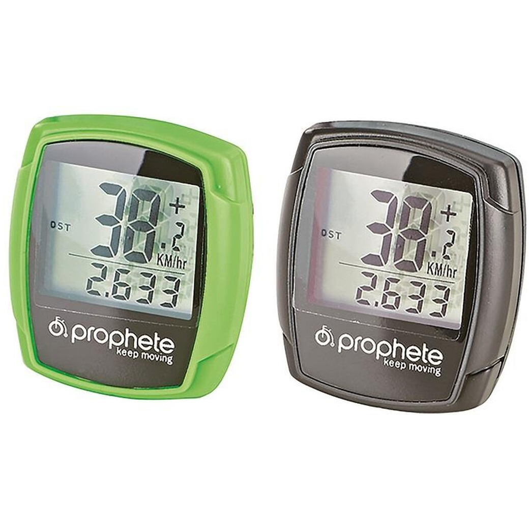 Prophete cykeldator med 9 funktioner, inklusive hastighet, tid och avstånd. Inkluderar fästen och batteri (1xCR2032).